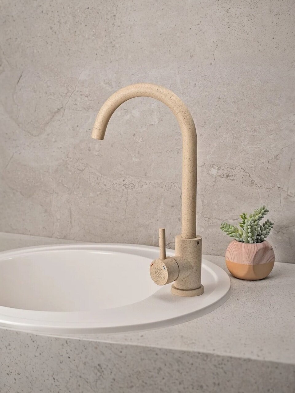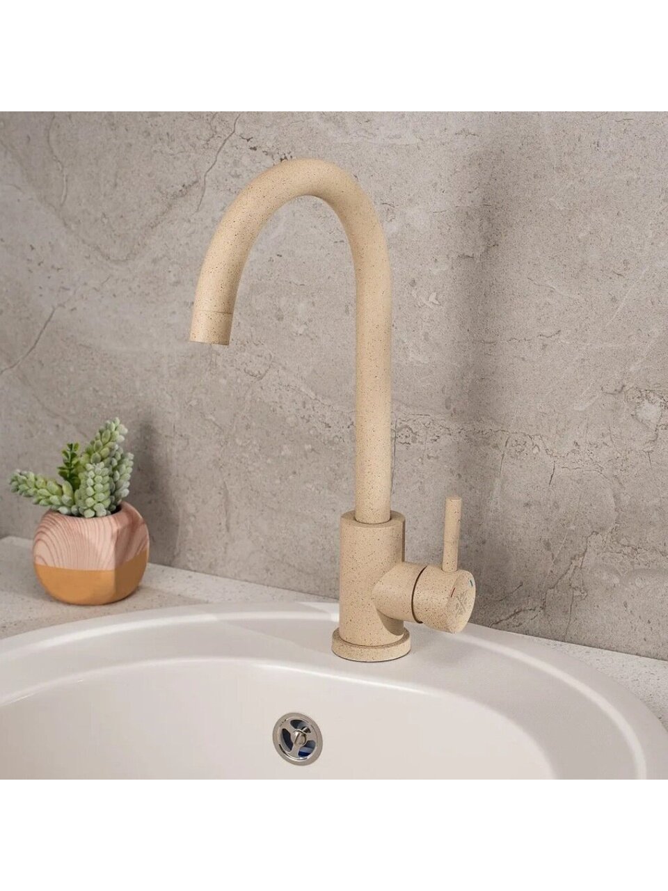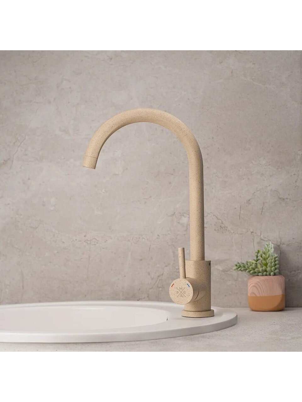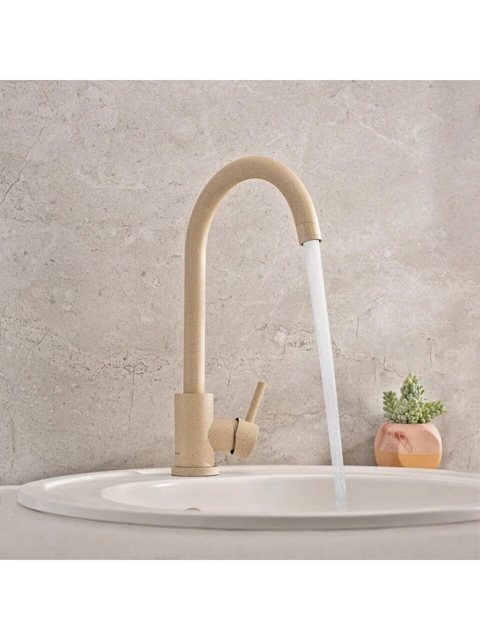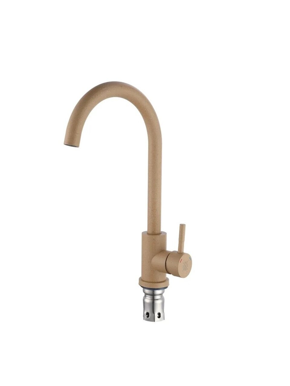 Смеситель для кухни РМС SUS124BGK-017F — это сочетание минималистичного дизайна и продуманной эргономики. Матовая поверхность в бежевом цвете гармонирует с современной кухней, а корпус из нержавеющей стали устойчив к коррозии и механическим повреждениям. Высокий поворотный излив (24 см) облегчает мытьё крупной посуды, что особенно ценно для семей и тех, кто часто готовит.