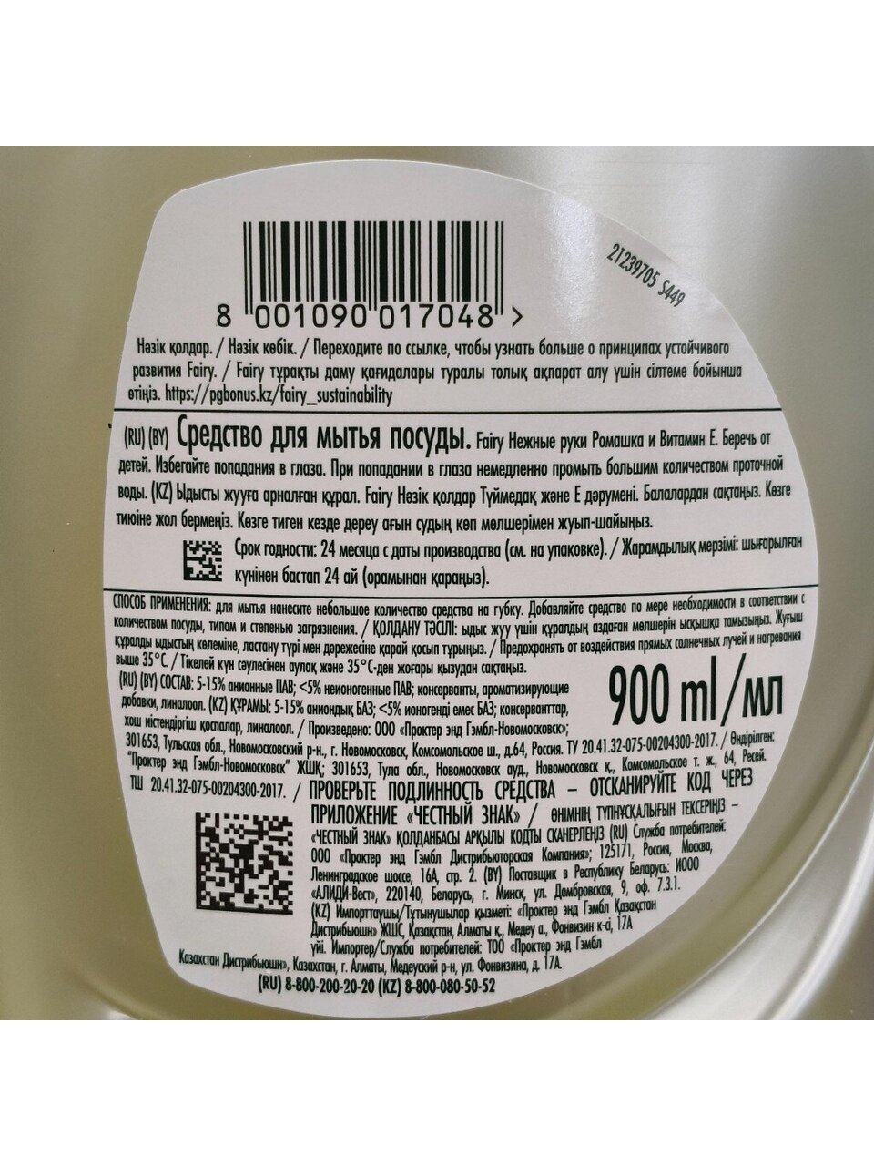 Fairy - безопасный продукт, разработанный в европейском научно-исследовательском центре (Brussels Innovation Centre) и полностью соответствующий ГОСТу РФ.
