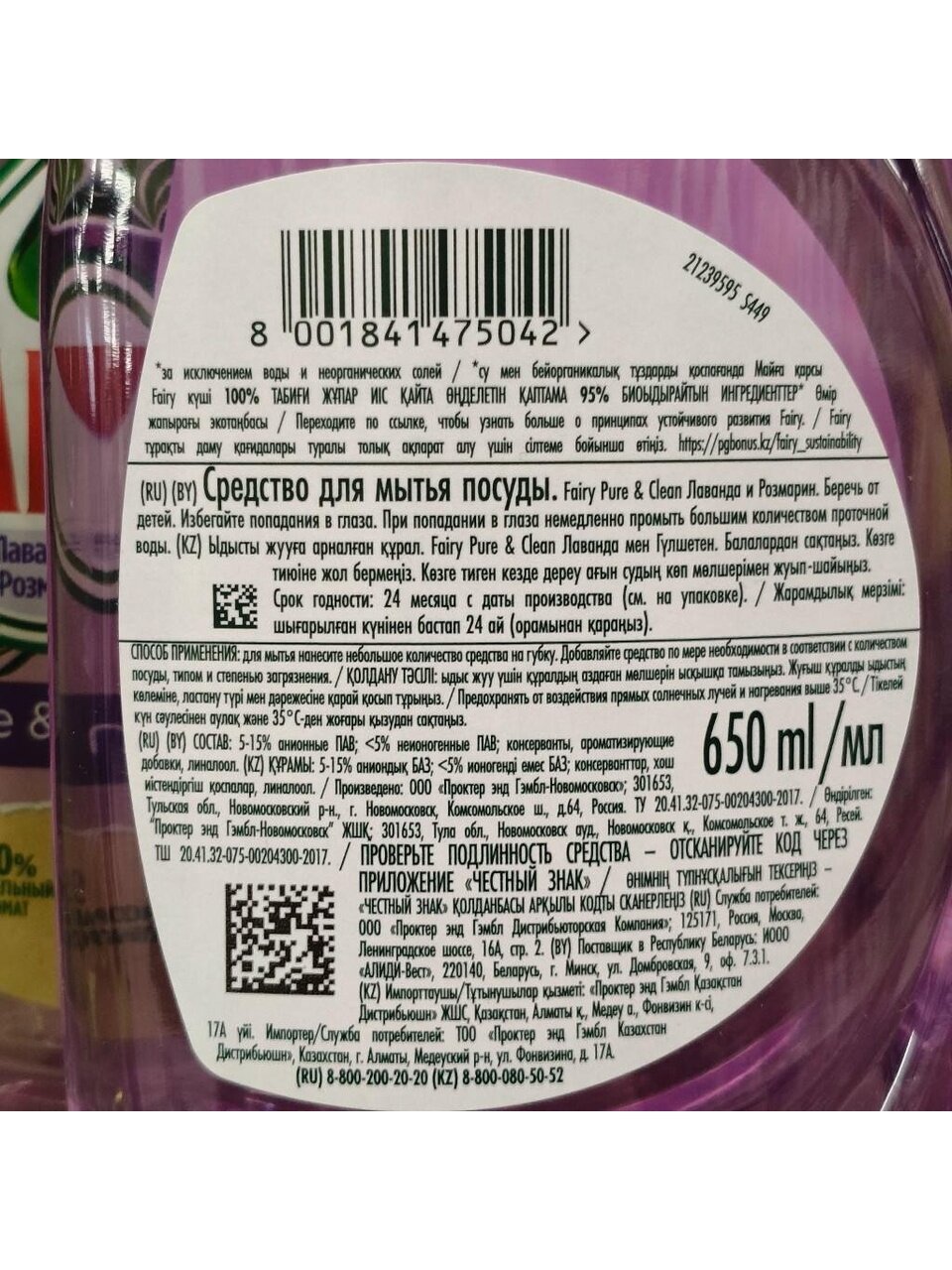 Вы можете приобрести «Средство для мытья посуды Fairy, Pure & Clean Лаванда и Розмарин, 650 мл» и другие товары в нашем интернет-магазине в Астрахани по низким ценам и с бесплатным самовывозом.
