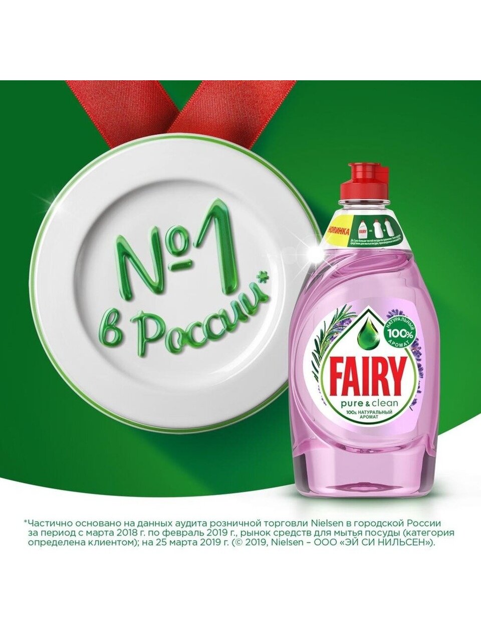 Средство для мытья посуды Fairy Pure & Clean сочетает в себе высокую эффективность Fairy в борьбе с загрязнениями и 100% натуральный аромат розмарина и лаванды из французского Прованса. Активные компоненты Fairy полностью удаляют остатки жира даже в холодной воде, а за счет образования стойкой пены даже одной капли средства хватает надолго. Формула легко смывается и дерматологически протестирована Ассоциацией здоровья кожи (Skin Health Alliance). 100% перерабатываемая бутылка. Обладает сертификатом экологического соответствия.