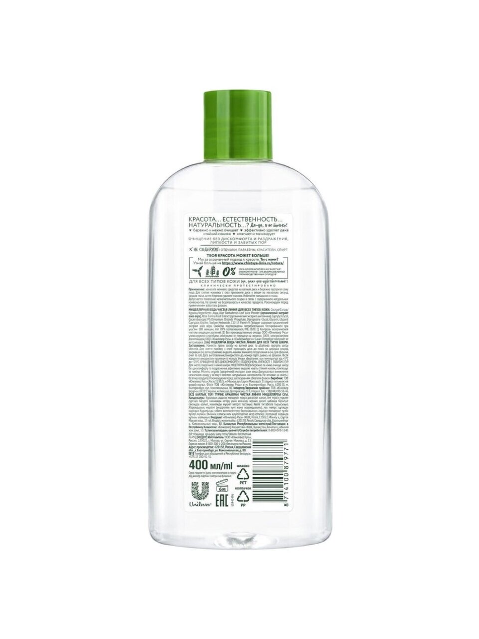 Мицеллярная вода Чистая Линия Natura для всех типов кожи бережно и нежно очищает кожу лица, эффективно удаляет даже стойкий макияж без раздражения и липкости.