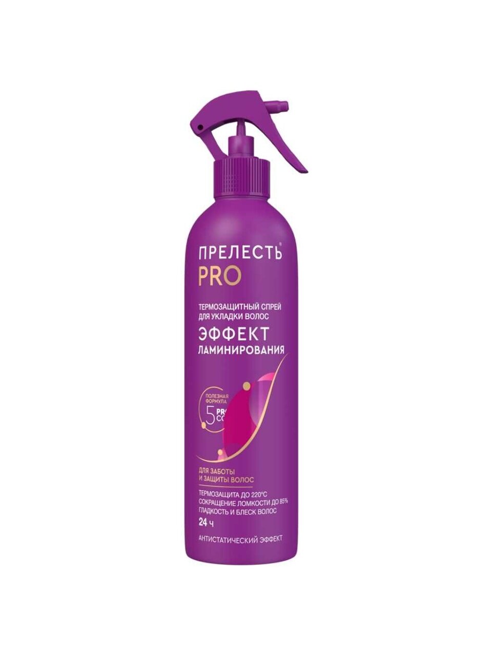 Спрей для укладки волос Эффект ламинирования от Прелесть Professional придает гладкость и здоровый блеск волосам до 24 часов. Эффект прямых волос и блеск! Спрей защищает от теплового воздействия. Идеален при применении утюжка для разглаживания волос.