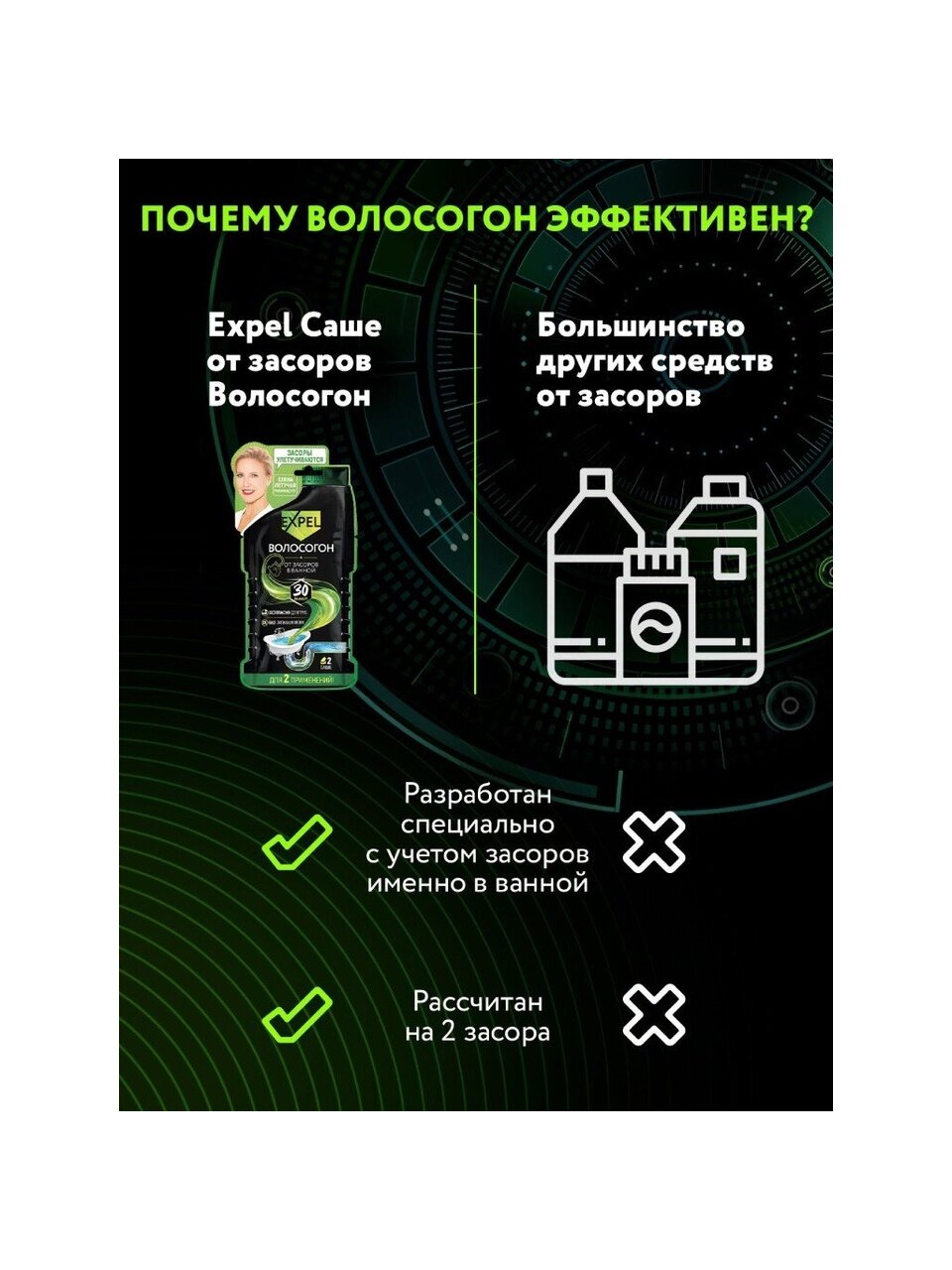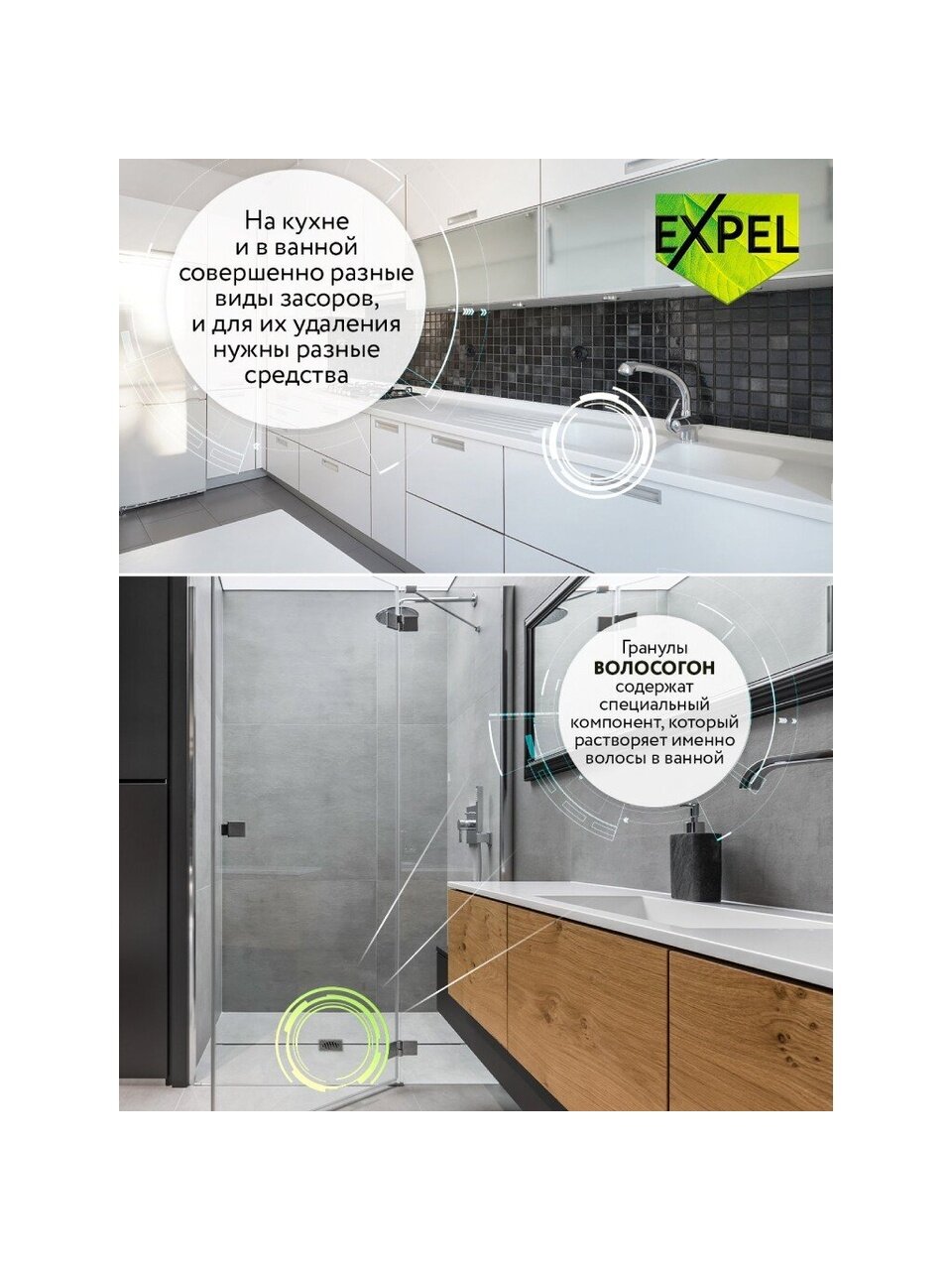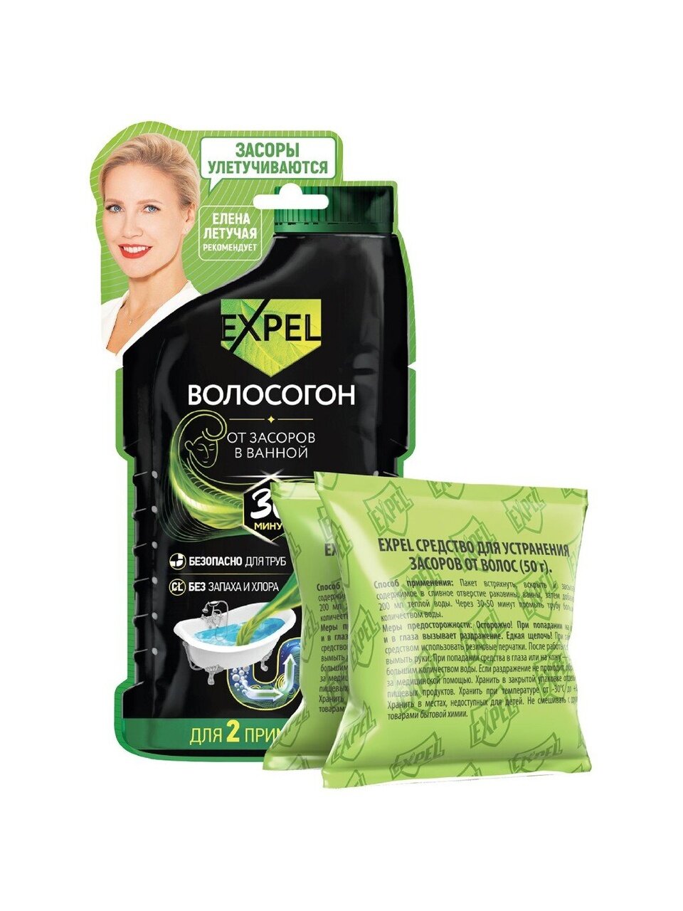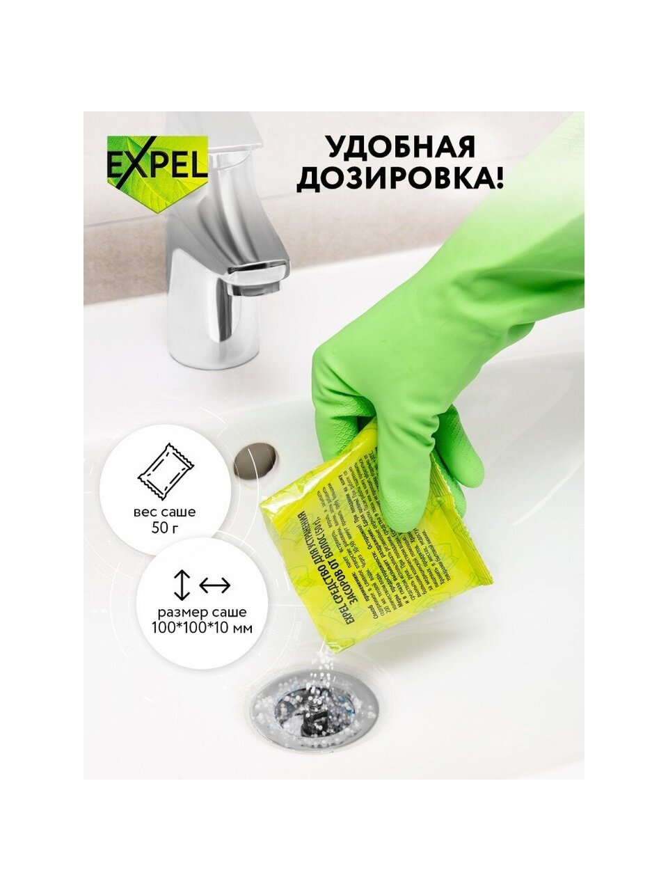 Средство для устранения засоров Expel. Устраняет сложные засоры от спутанных волос. Не содержит хлора. Безопасно для труб.