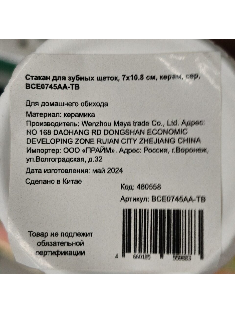 Вы можете приобрести «Стакан для зубных щеток, 7х10.8 см, керамика, серый, BCE0745AA-TB» и другие товары в нашем интернет-магазине в Ельце по низким ценам и с бесплатным самовывозом.