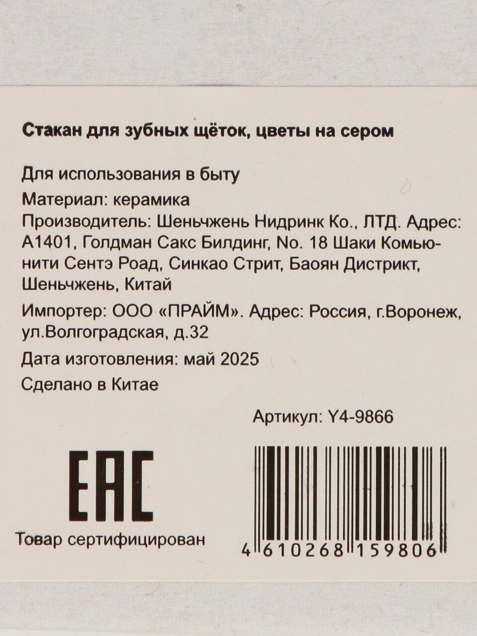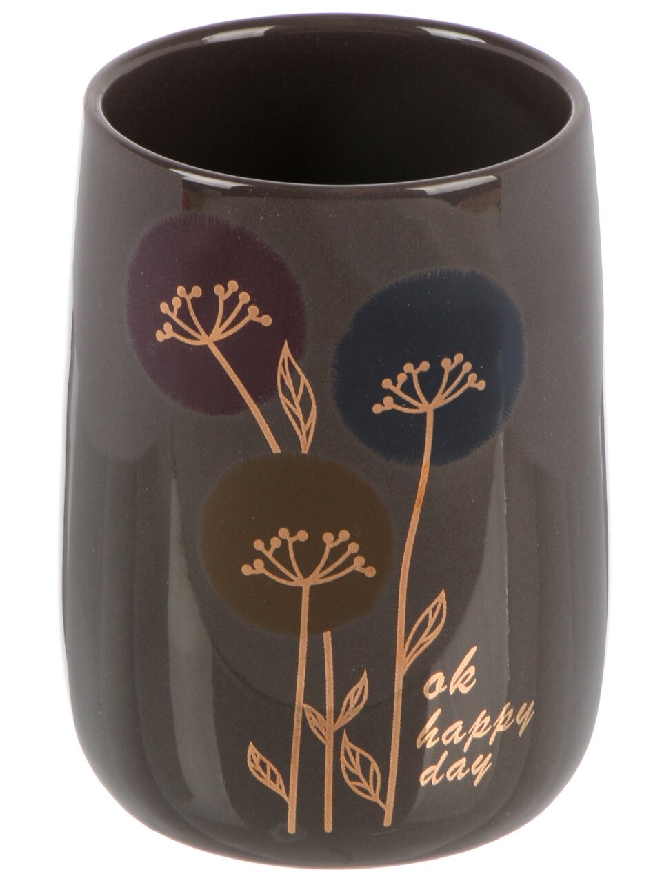 Стакан для зубных щеток керамика, цветы на сером, Y4-9866