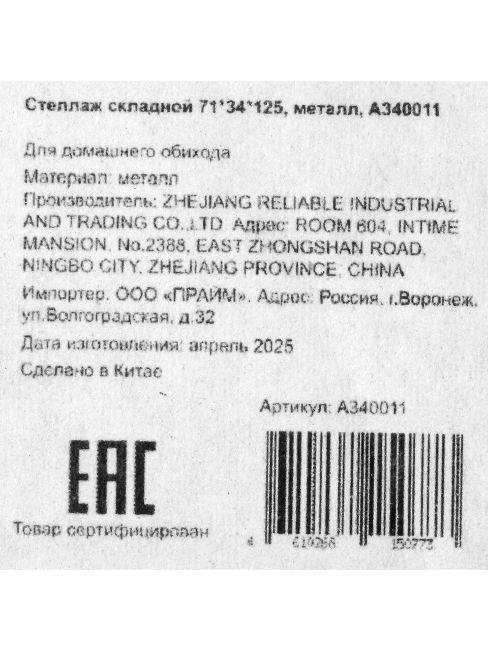 Вы можете приобрести «Стеллаж универсальный, металл, 4 секции, 71х34х125 см, складной, A340011» и другие товары в нашем интернет-магазине в Астрахани по низким ценам и с бесплатным самовывозом.