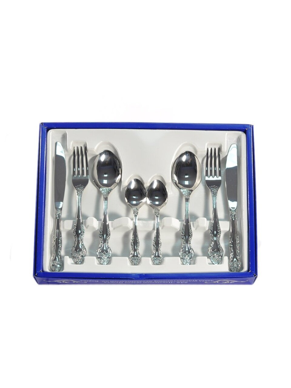 В комплекте 24 предмета — по 6 столовых ложек, вилок, ножей и чайных ложек. Этого достаточно для сервировки на 6 персон.
