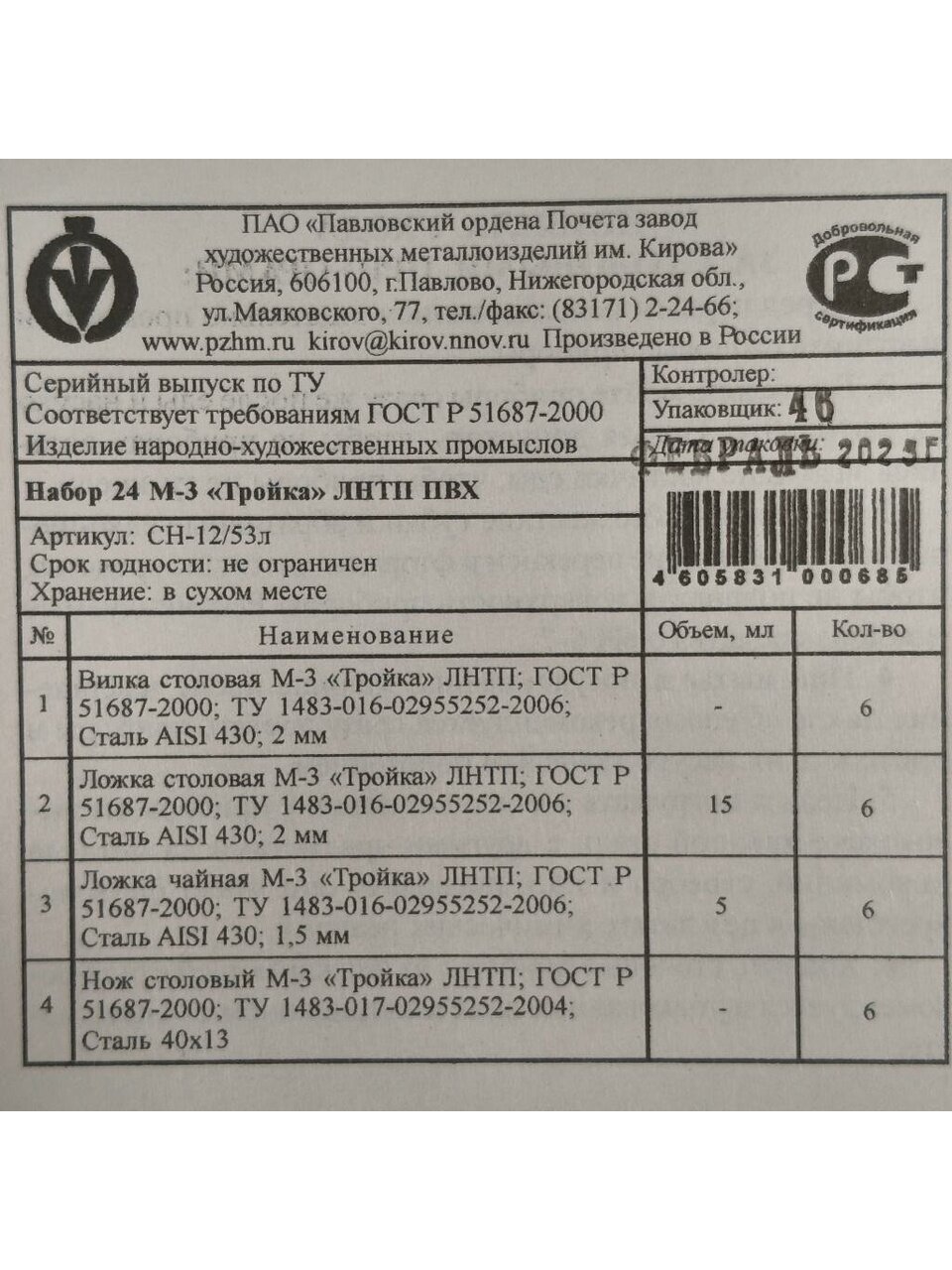 Вы можете приобрести «Набор столовых приборов нержавеющая сталь, 24 предмета, с золотым напылением, подарочная упаковка, Павловский завод им. Кирова, Тройка М-3, СН-12/53л» и другие товары в нашем интернет-магазине в Астрахани по низким ценам и с бесплатным самовывозом.