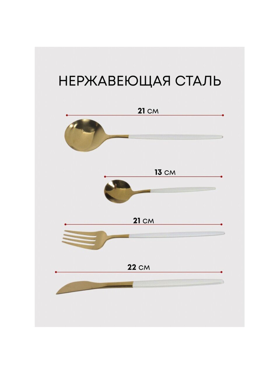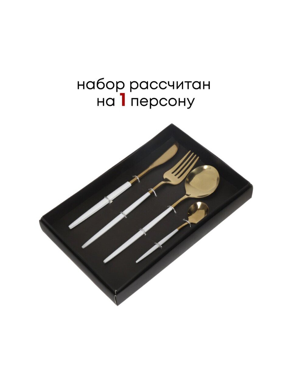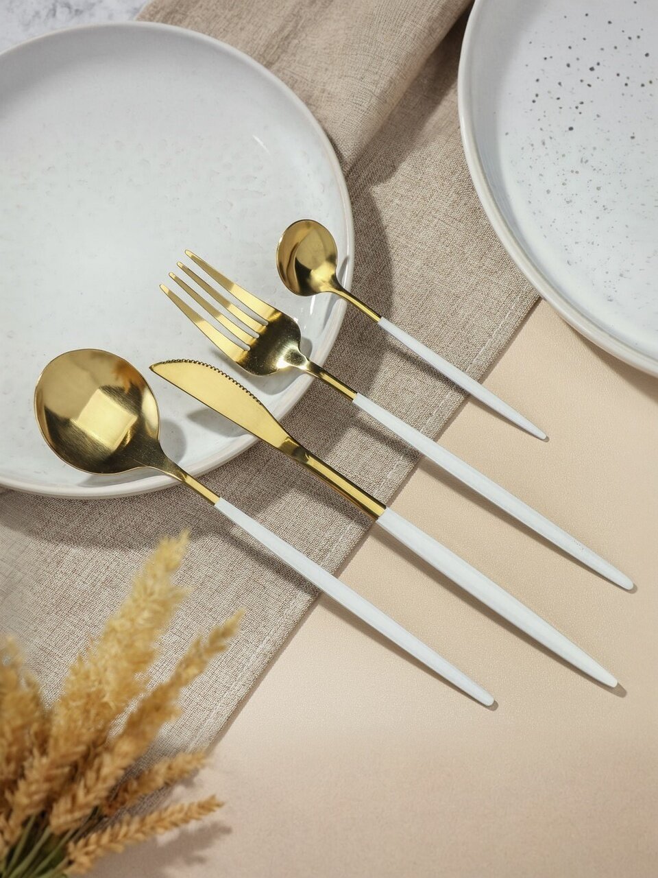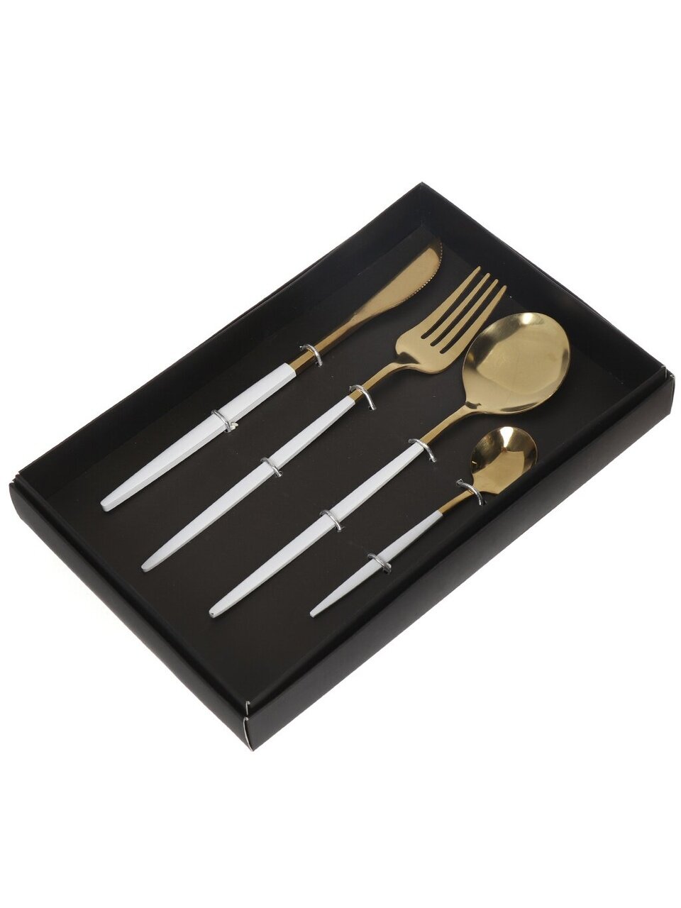 Подарочный набор столовых приборов из нержавеющей стали: 4 предмета для сервировки на 1 персону, стильный белый дизайн, идеальный подарок на 8 марта.