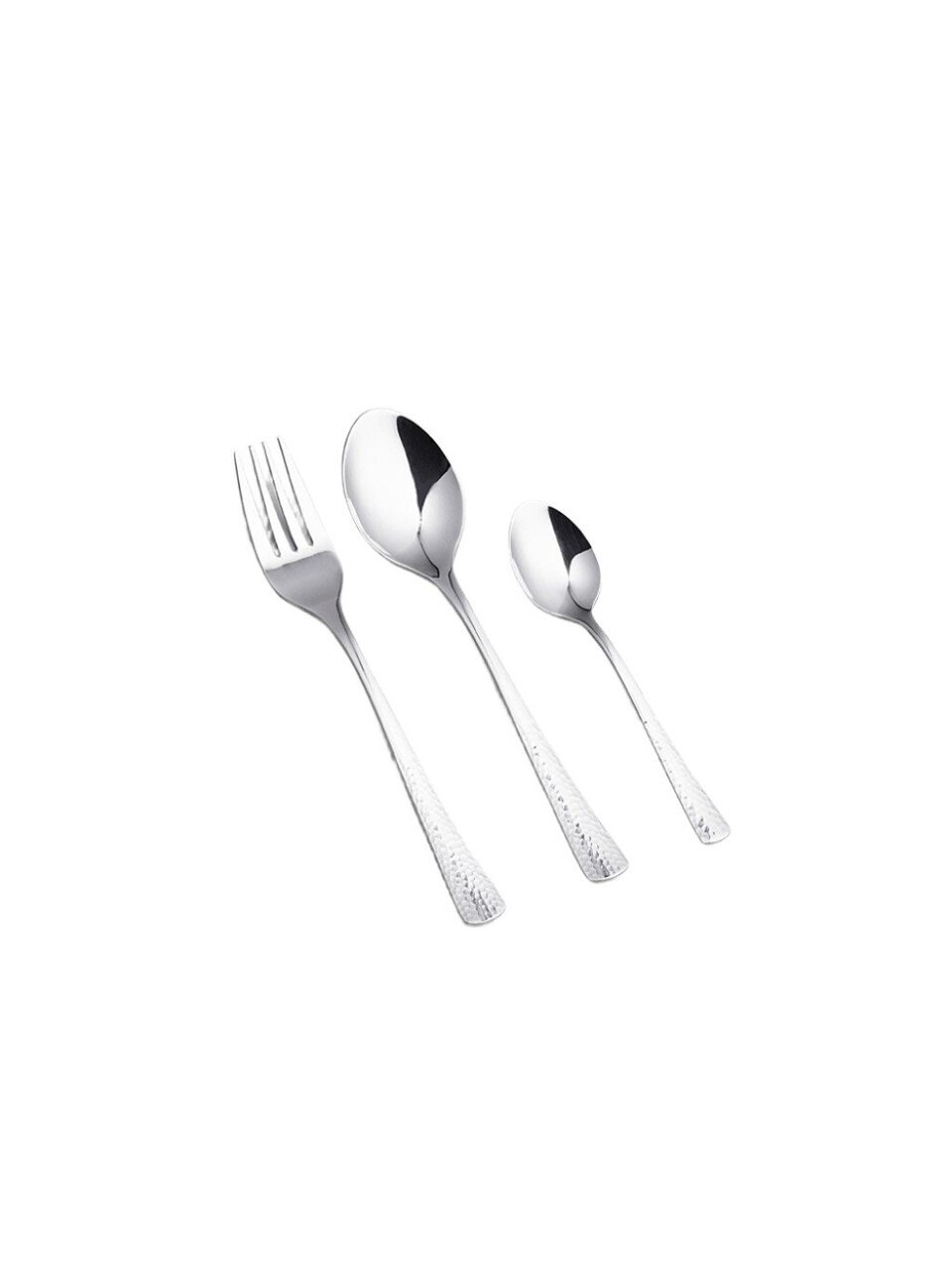 В набор входит 18 предметов для 6 персон: ложки, вилки, ножи. Все элементы выполнены из нержавеющей стали, ручки — металлические, без вставок.