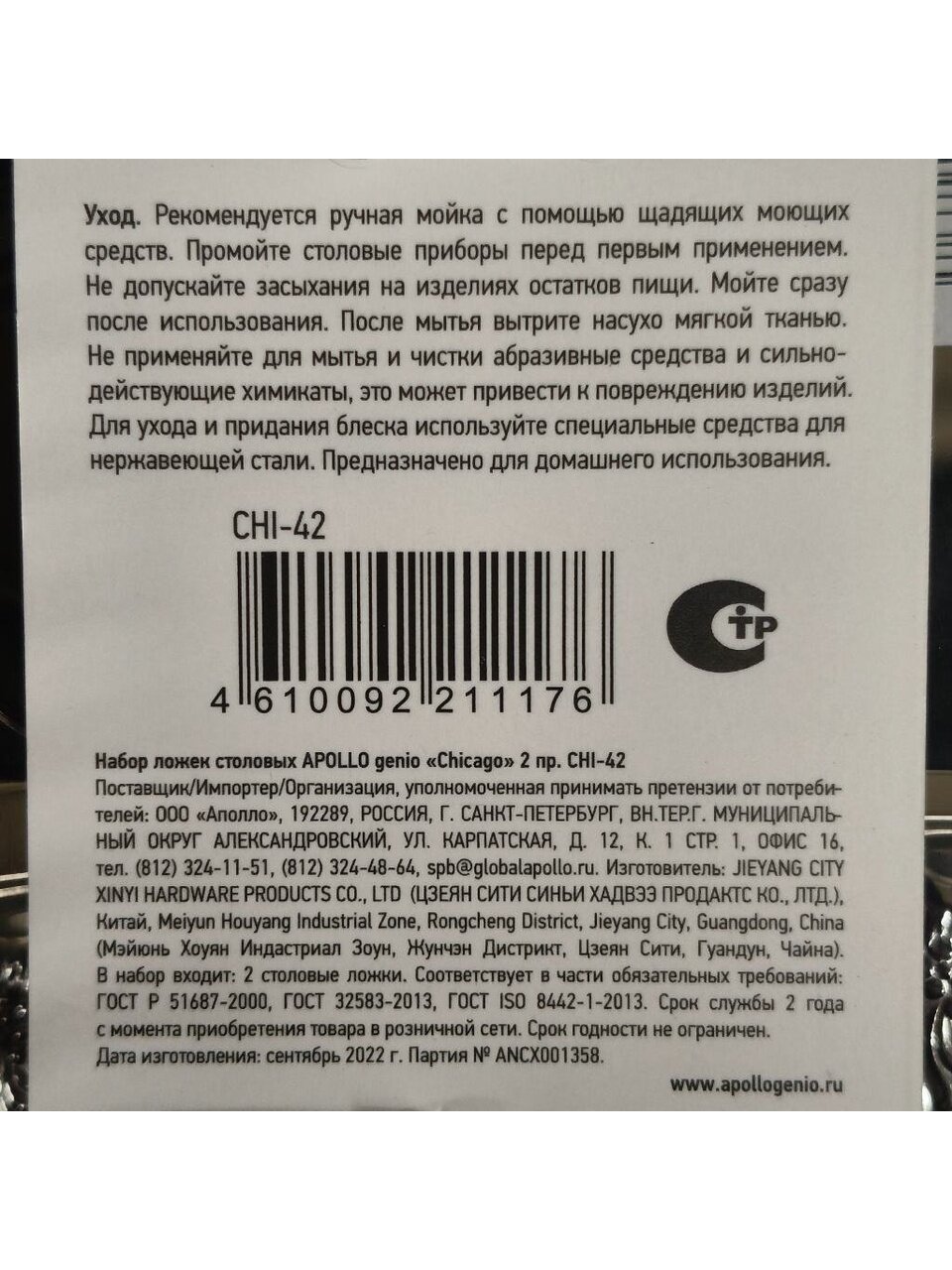 Ложки Apollo Chicago: стиль из нержавеющей стали для сервировки стола — комплект 2 шт. для дома, дачи и подарка. Надёжно, удобно, современно.