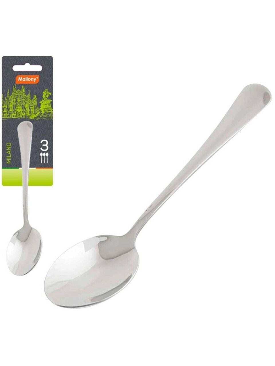 Ложки чайные Mallony Milano из нержавеющей стали — комплект 3 шт. для стильной сервировки, долговечности и удобства в быту и на даче.