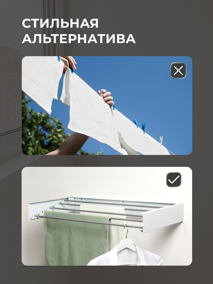 Откройте для себя идеальное решение для сушки белья в домашних условиях с настенной сушилкой длиной 100 см. Эта белая сушилка для белья, модель A340108, станет незаменимым помощником для тех, кто ценит удобство и практичность в повседневной жизни. Благодаря своему стильному и лаконичному дизайну, она легко впишется в любой интерьер, будь то балкон или ванная комната.