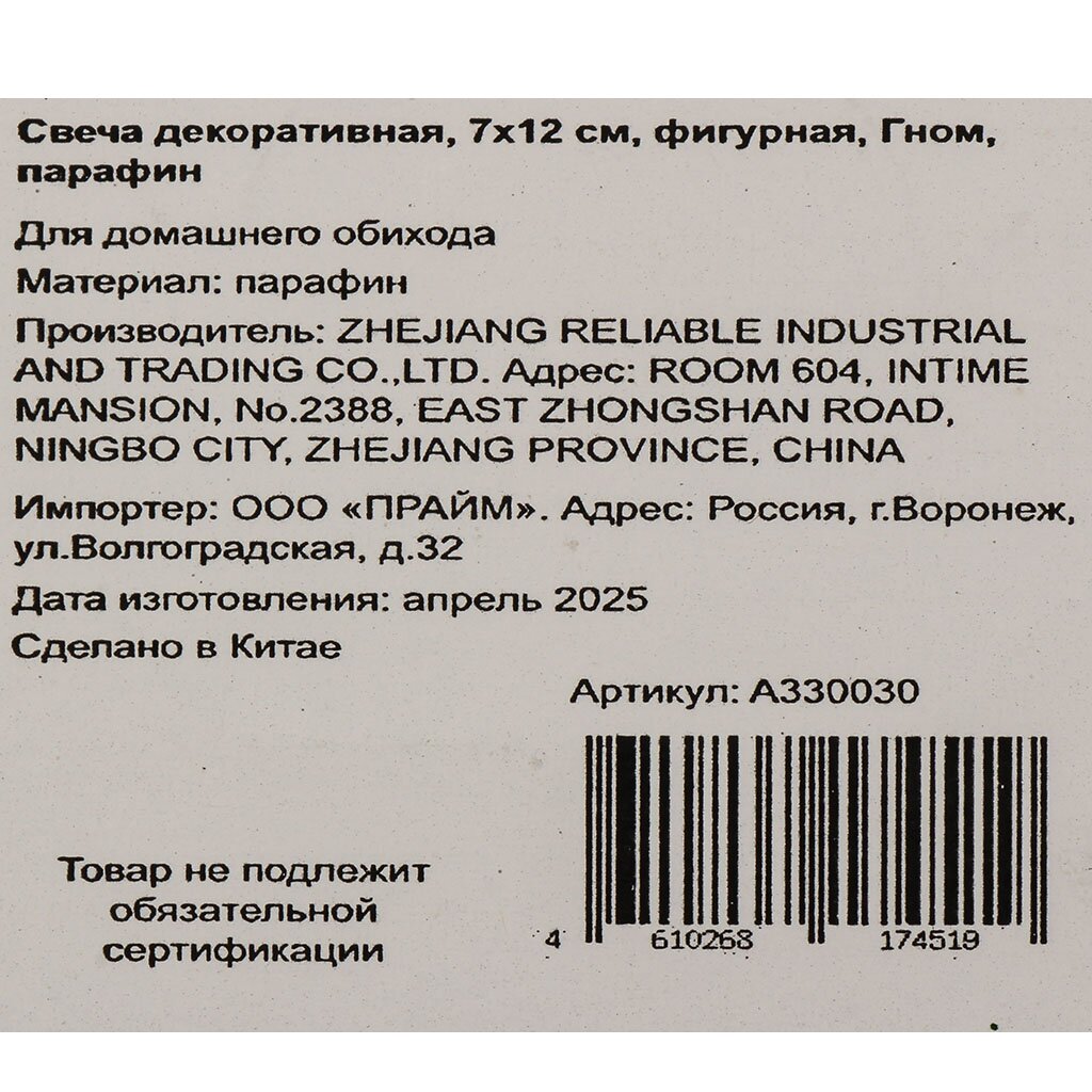 Вы можете приобрести «Свеча декоративная, 7х12 см, фигурная, Гном, парафин, A330030» и другие товары в нашем интернет-магазине в Коврове по низким ценам и с бесплатным самовывозом.