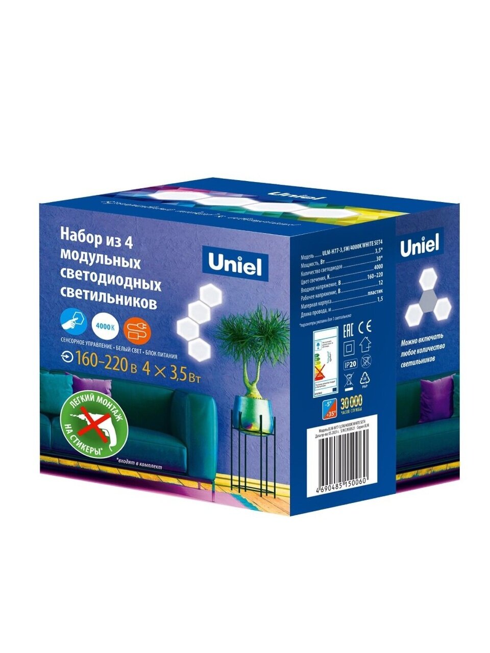 Вы можете приобрести «Светильник светодиодный, Uniel, 3.5 Вт, 4000 К, 400 Лм, IP20, 11х10х1.8 см, модульный, набор 4шт, белый свет, UL-00008635» и другие товары в нашем интернет-магазине в Твери по низким ценам и с бесплатным самовывозом.