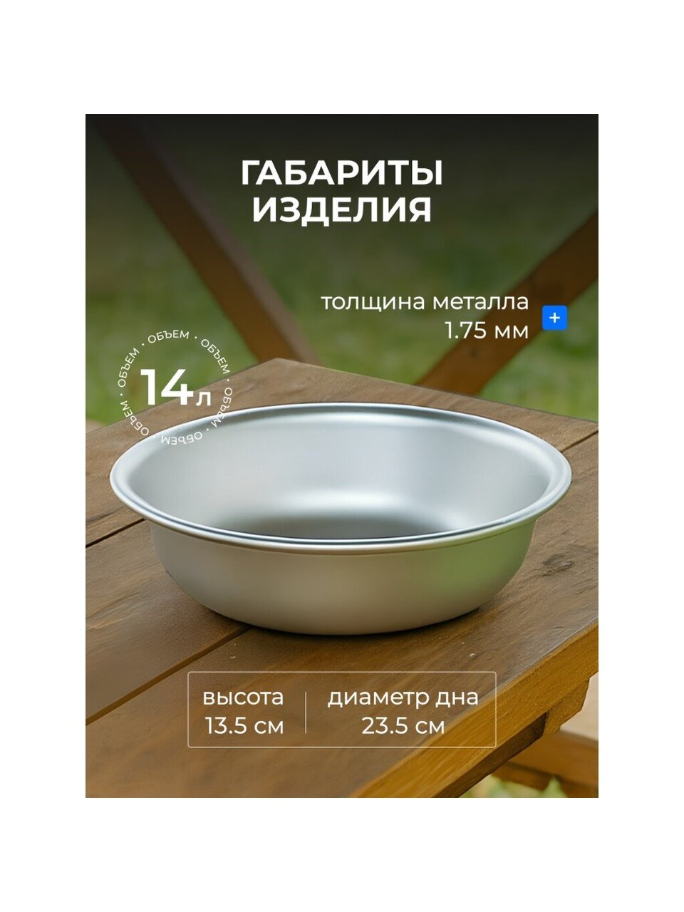 - Таз из пищевого алюминия имеет прочные и толстые стенки, что обеспечивает долговечность изделия. Такой таз будет служить вам долгое время без потери своих качеств.