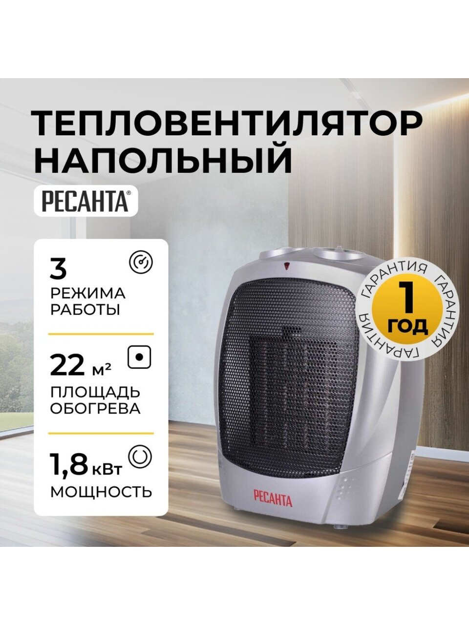 Тепловентилятор РЕСАНТА ТВК-1 - отопительный прибор, нагревающий поток воздуха, продуваемого через нагревательный элемент, при помощи встроенного вентилятора.