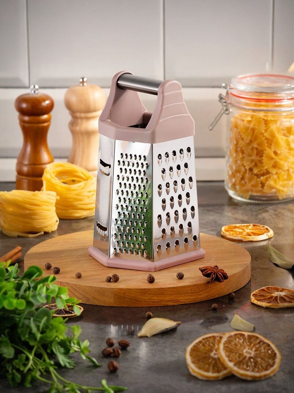 - Стильный дизайн терки гармонично впишется в интерьер Вашей кухни.