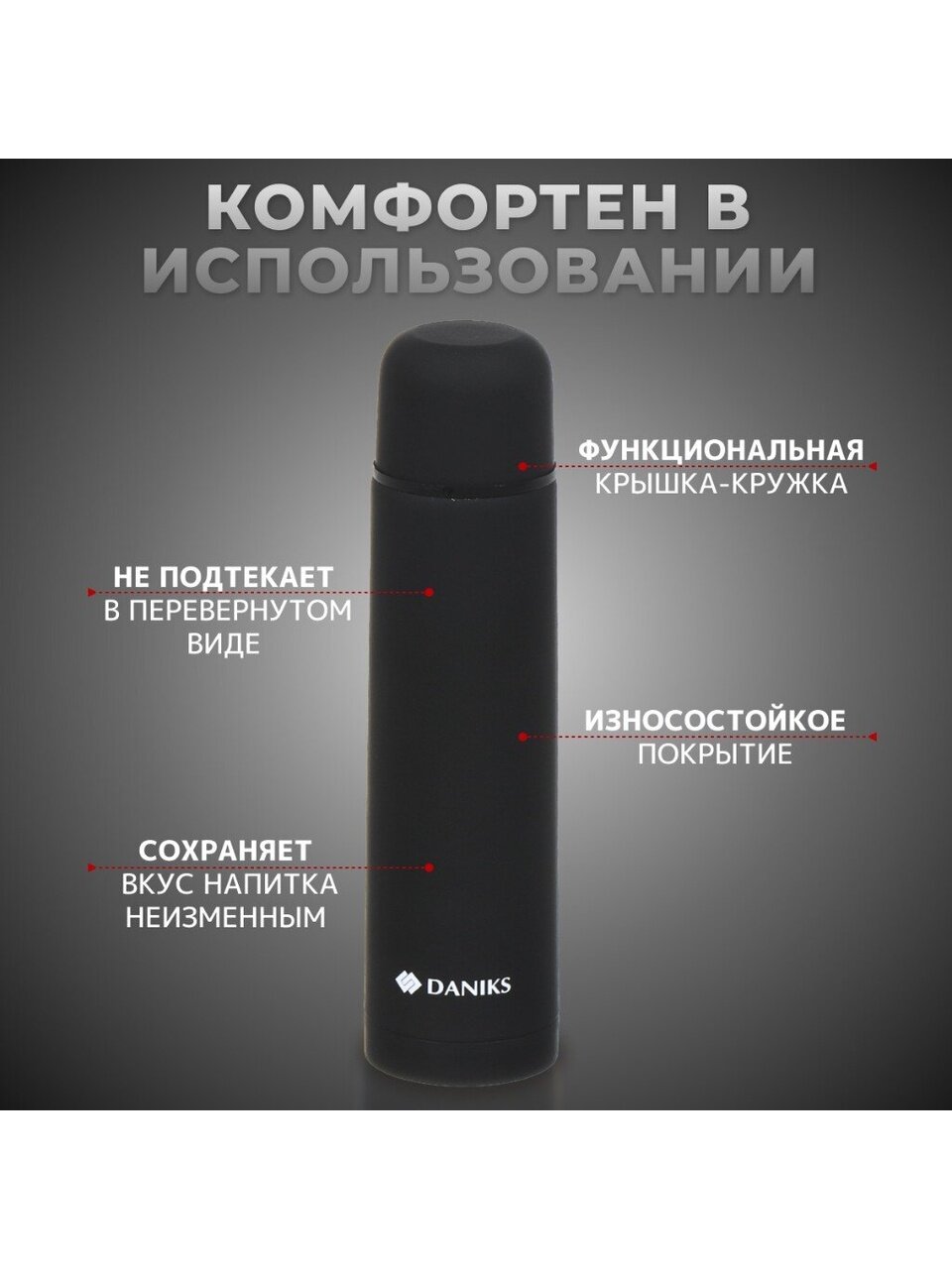 Термос Daniks 1.2 л с узкой горловиной: сохраняет тепло и холод до 24 часов, стильный черный софт для города, дома и путешествий.