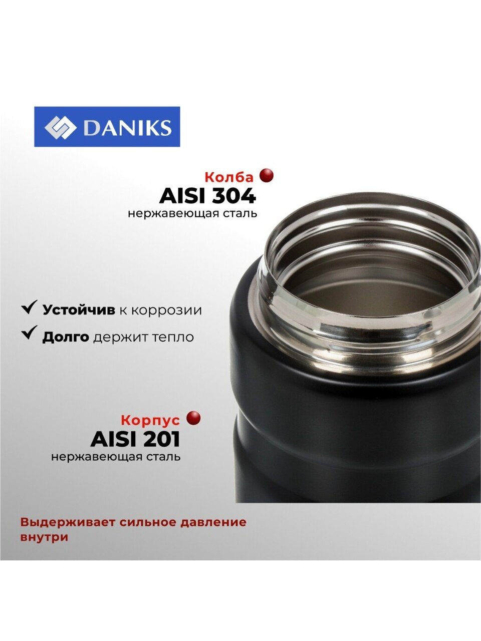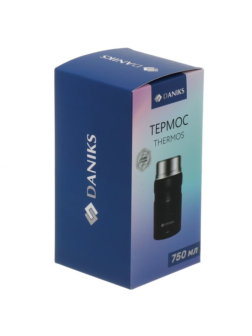 Термос Daniks 0.75 л с широкой горловиной и ложкой — держит тепло и холод до 24 часов, идеально для еды в дороге, на даче или в офисе.