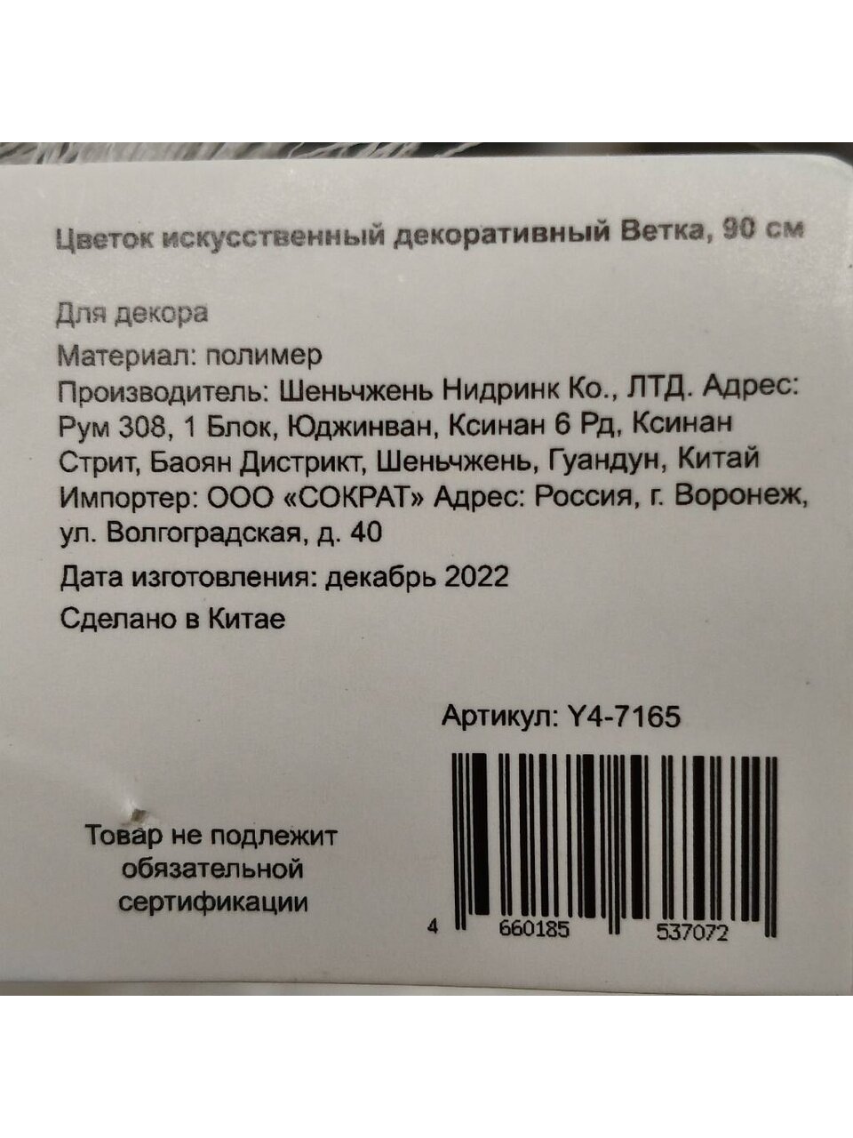 Вы можете приобрести «Цветок искусственный декоративный Ветвь, 85 см, зеленый, Y4-7155» и другие товары в нашем интернет-магазине в Россоши по низким ценам и с бесплатным самовывозом.