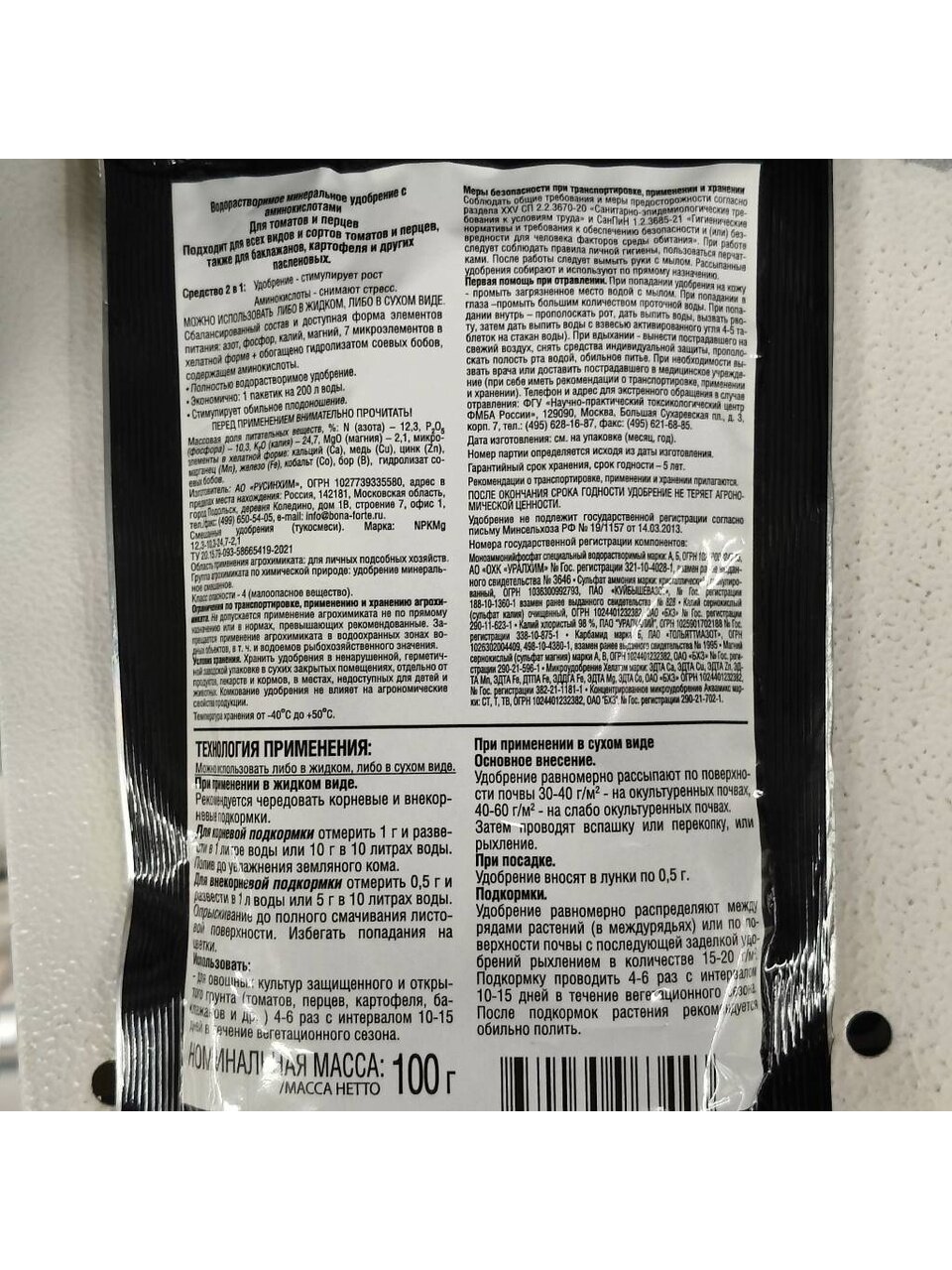 - Активные компоненты: азот, фосфор, калий, магний, аминокислоты.