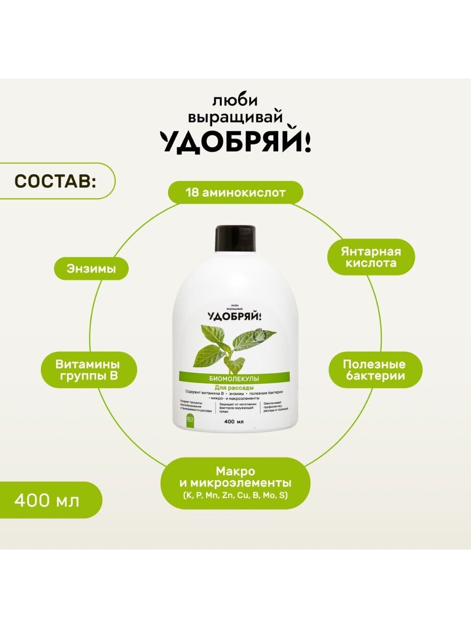 Закажите удобрение для рассады «Биомолекулы» 400 мл — обеспечьте здоровое развитие растений, экономьте на дополнительных подкормках и получайте урожай без лишних хлопот.