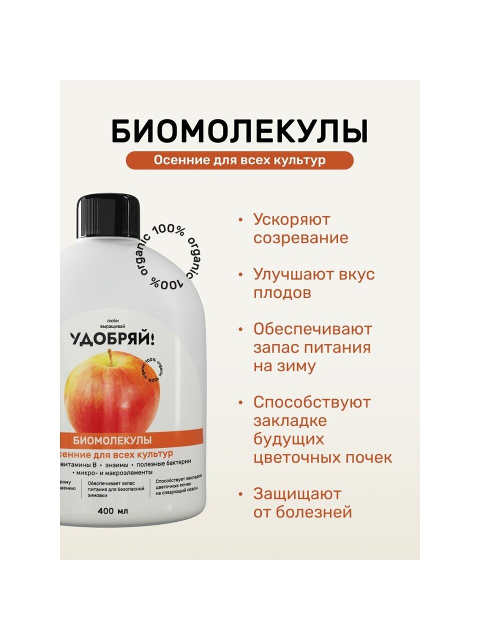 Комплексное органическое удобрение «Биомолекулы» 400 мл — ускорьте плодоношение и защитите растения от болезней осенью, экономя время и силы.