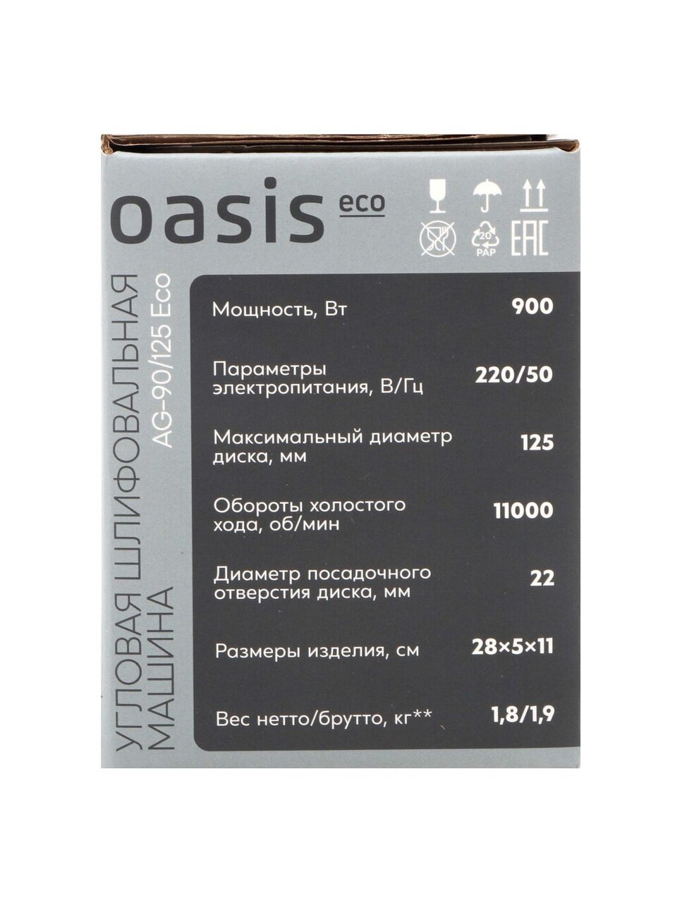 Вы можете приобрести «Угловая шлифовальная машина Oasis, AG-90/125 Eco, 900 Вт, 125 мм» и другие товары в нашем интернет-магазине в Обнинске по низким ценам и с бесплатным самовывозом.