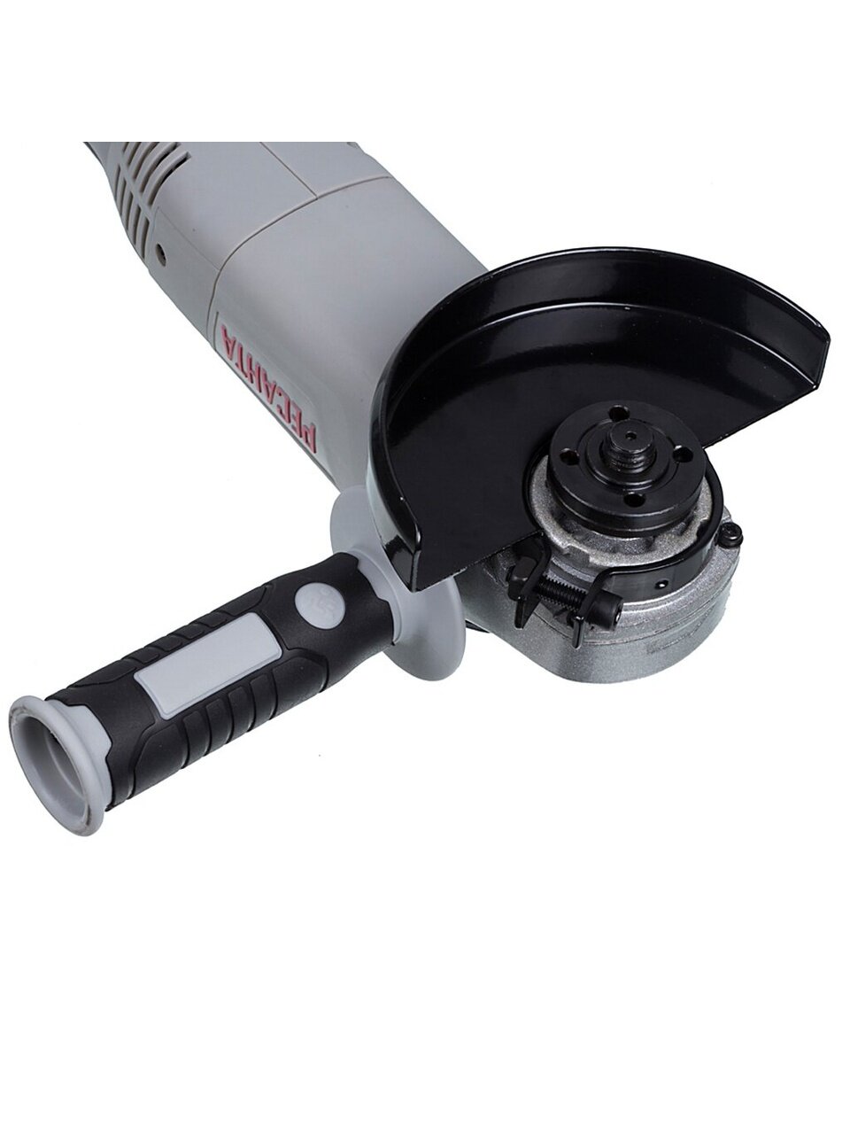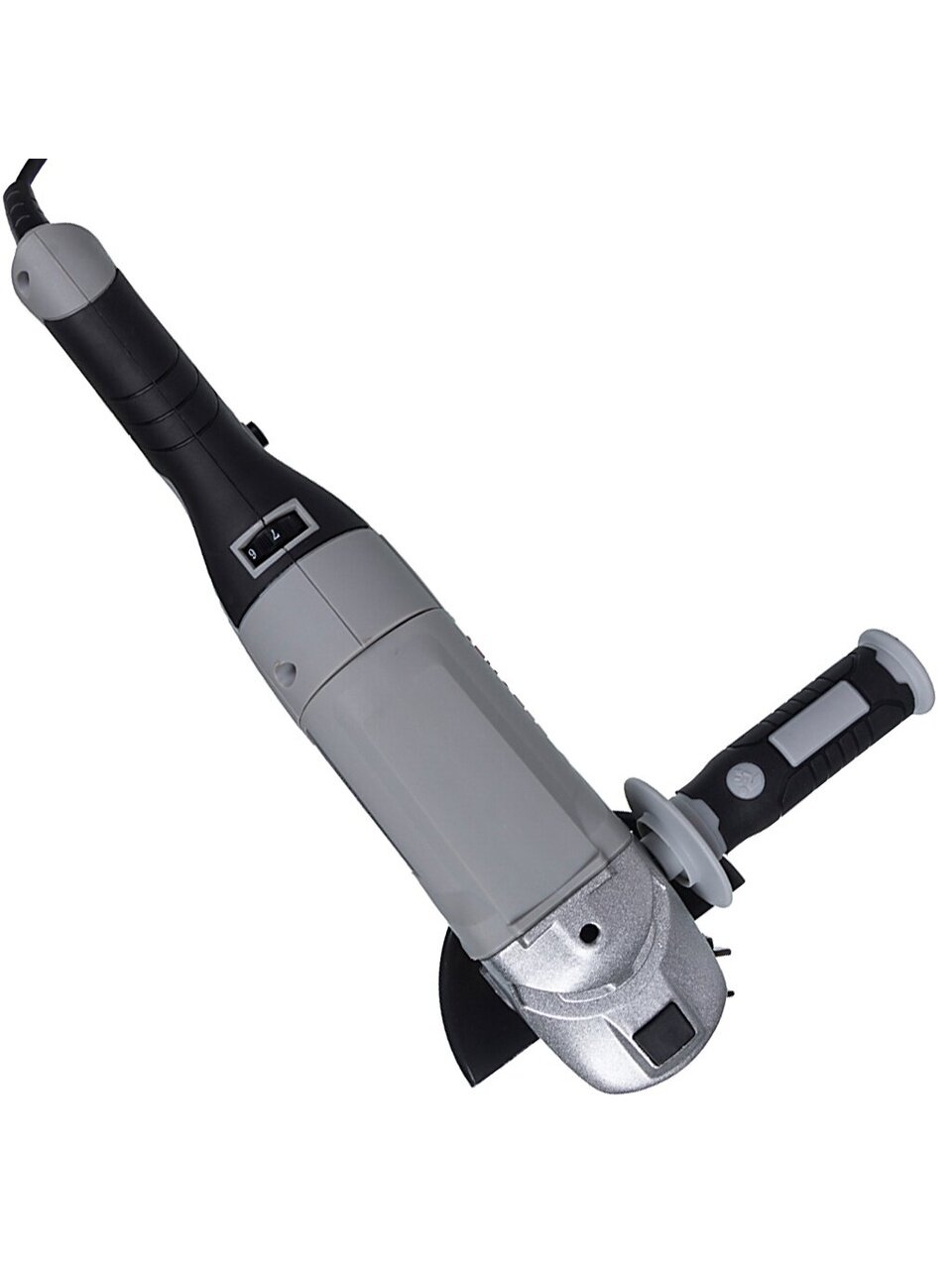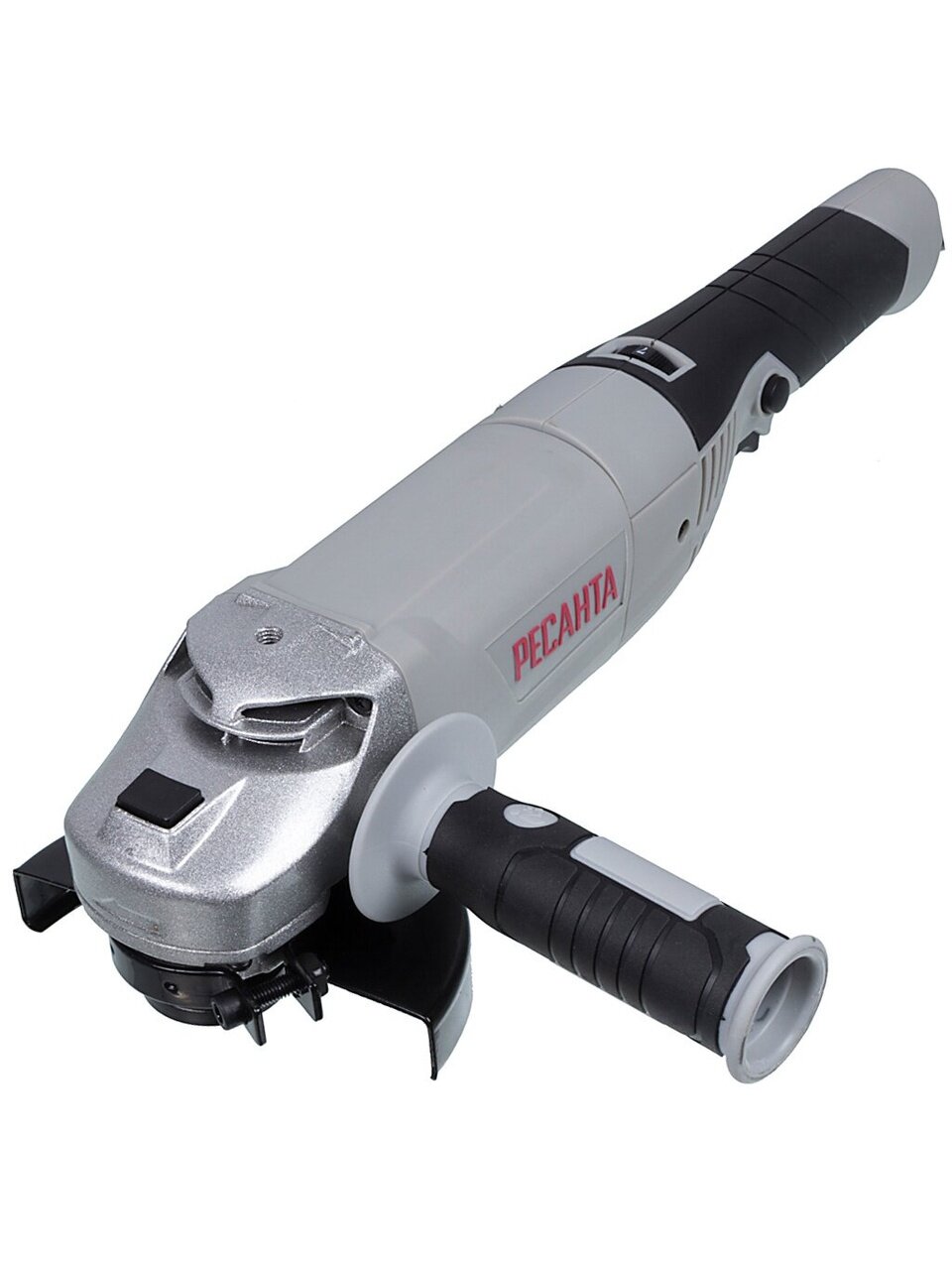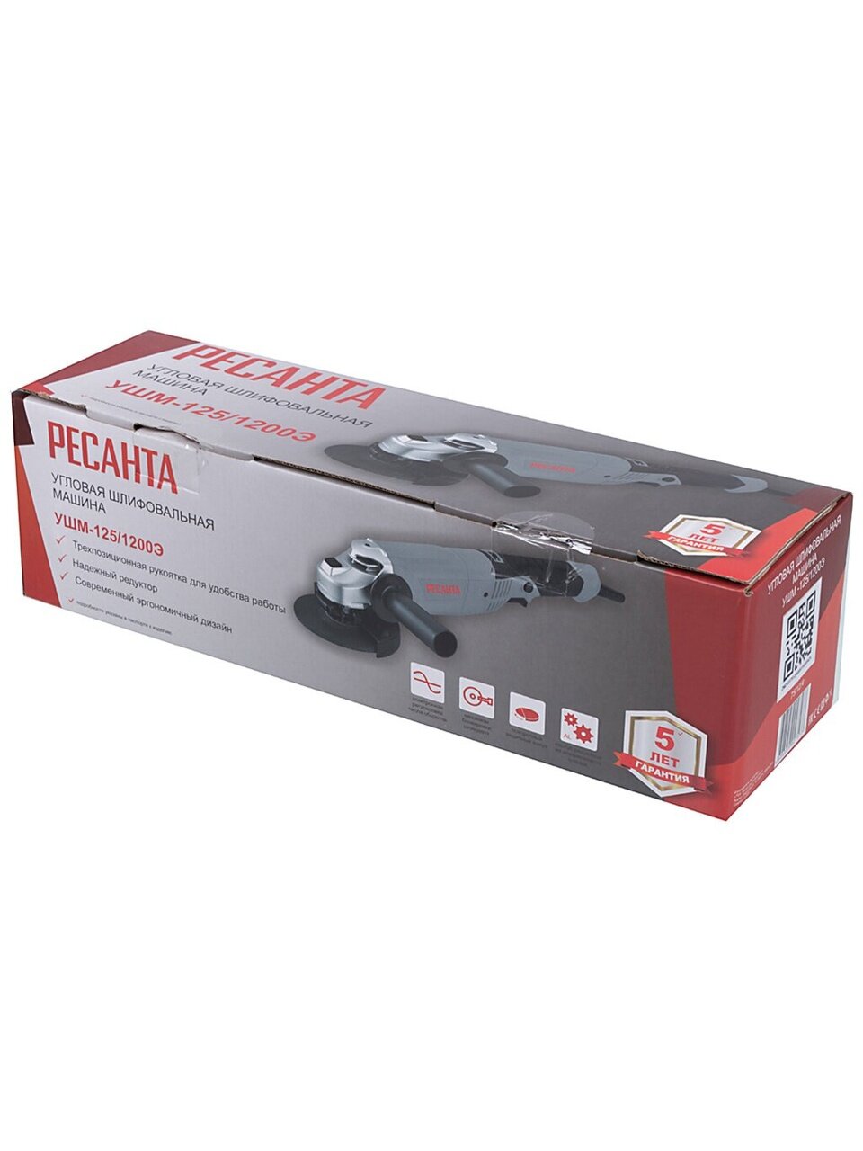 Угловая шлифовальная машина Ресанта УШМ-125/1200Э - инструмент, используемый для шлифования, зачистки поверхности или резки материала. Корпус редуктора выполнен из металла. Боковая рукоятка фиксируется в трех положениях для более удобной работы. Вытянутый корпус обеспечивает надежное удержание углошлифовальной машины во время работы. На корпусе инструмента предусмотрены вентиляционные отверстия, которые защищают рабочий механизм от перегрева. Пильный диск закрыт кожухом для защиты оператора от травм. Предусмотрена кнопка блокировки шпинделя для быстрой и безопасной замены оснастки.