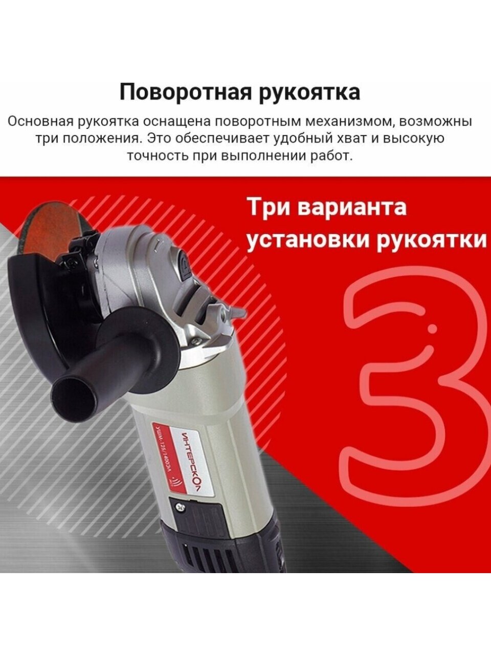 - Три варианта установки дополнительной рукоятки.
