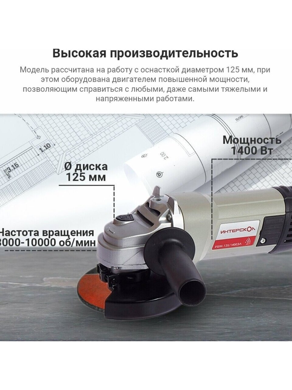 Вы можете приобрести «Угловая шлифовальная машина Интерскол, УШМ-125/1400ЭЛ, 1400 Вт, 125 мм, регулировка оборотов» и другие товары в нашем интернет-магазине в Нижнем Новгороде по низким ценам и с бесплатным самовывозом.