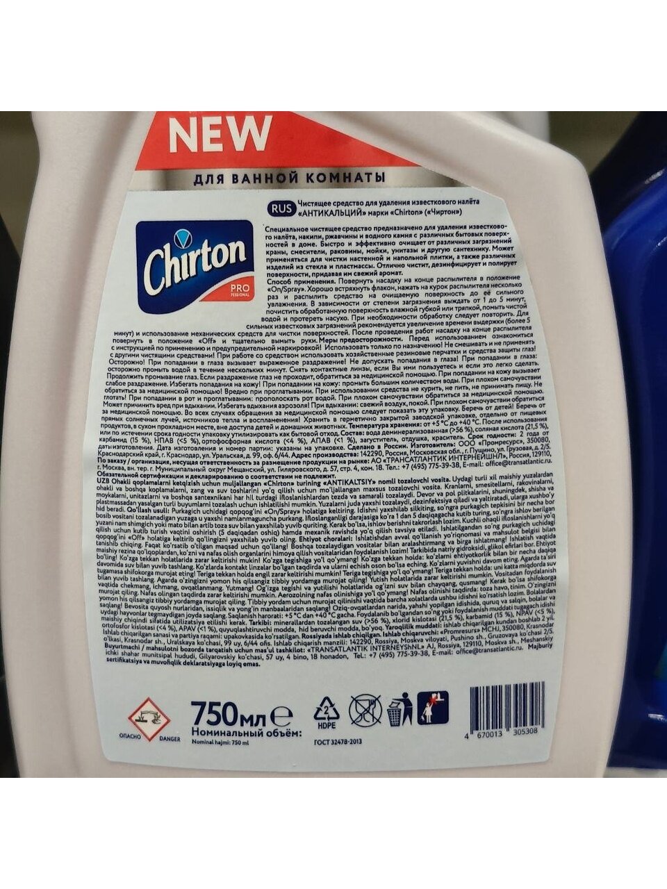 Вы можете приобрести «Чистящее средство для удаления известкового налета, Chirton, Антикальций, спрей, 750 мл» и другие товары в нашем интернет-магазине в Железногорске по низким ценам и с бесплатным самовывозом.