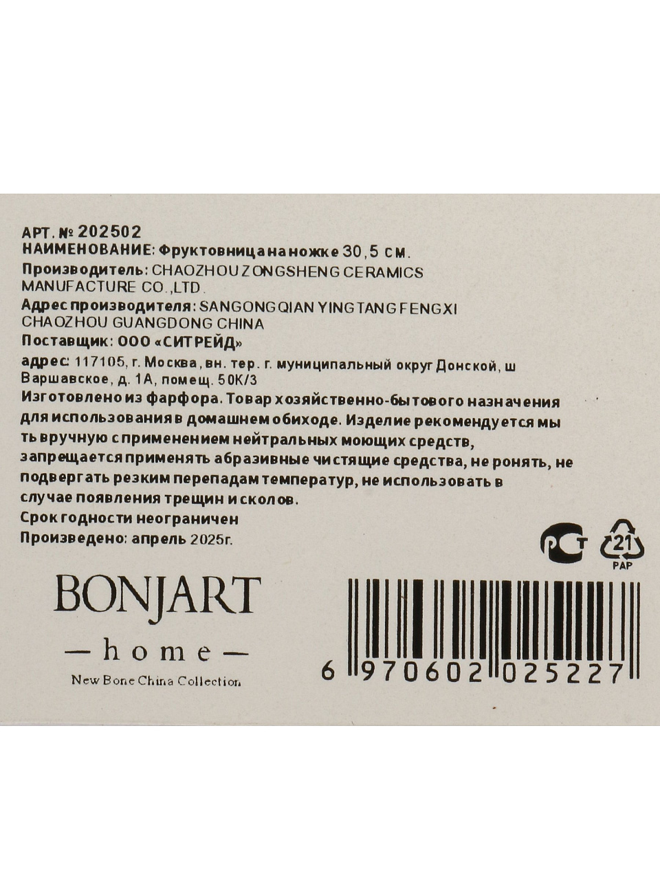 Вы можете приобрести «Ваза для фруктов, фарфор, на ножке, 30.5 см, Bonjart, 202502» и другие товары в нашем интернет-магазине в Коврове по низким ценам и с бесплатным самовывозом.