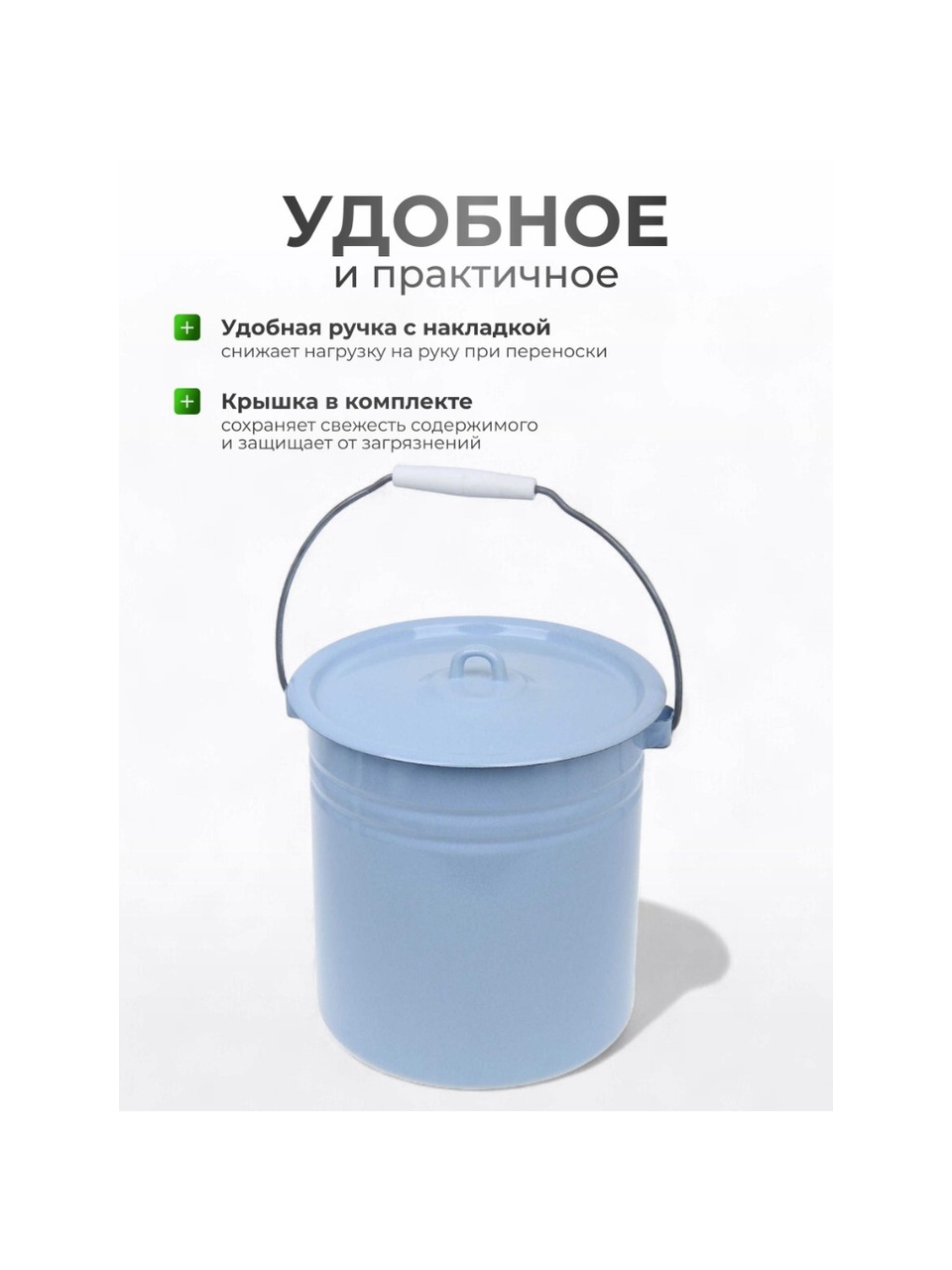 Ведро стальное эмалированное 12 л с крышкой — универсальное решение для дома и дачи: долговечно, не ржавеет, подходит для пищевых продуктов и хозяйственных нужд.