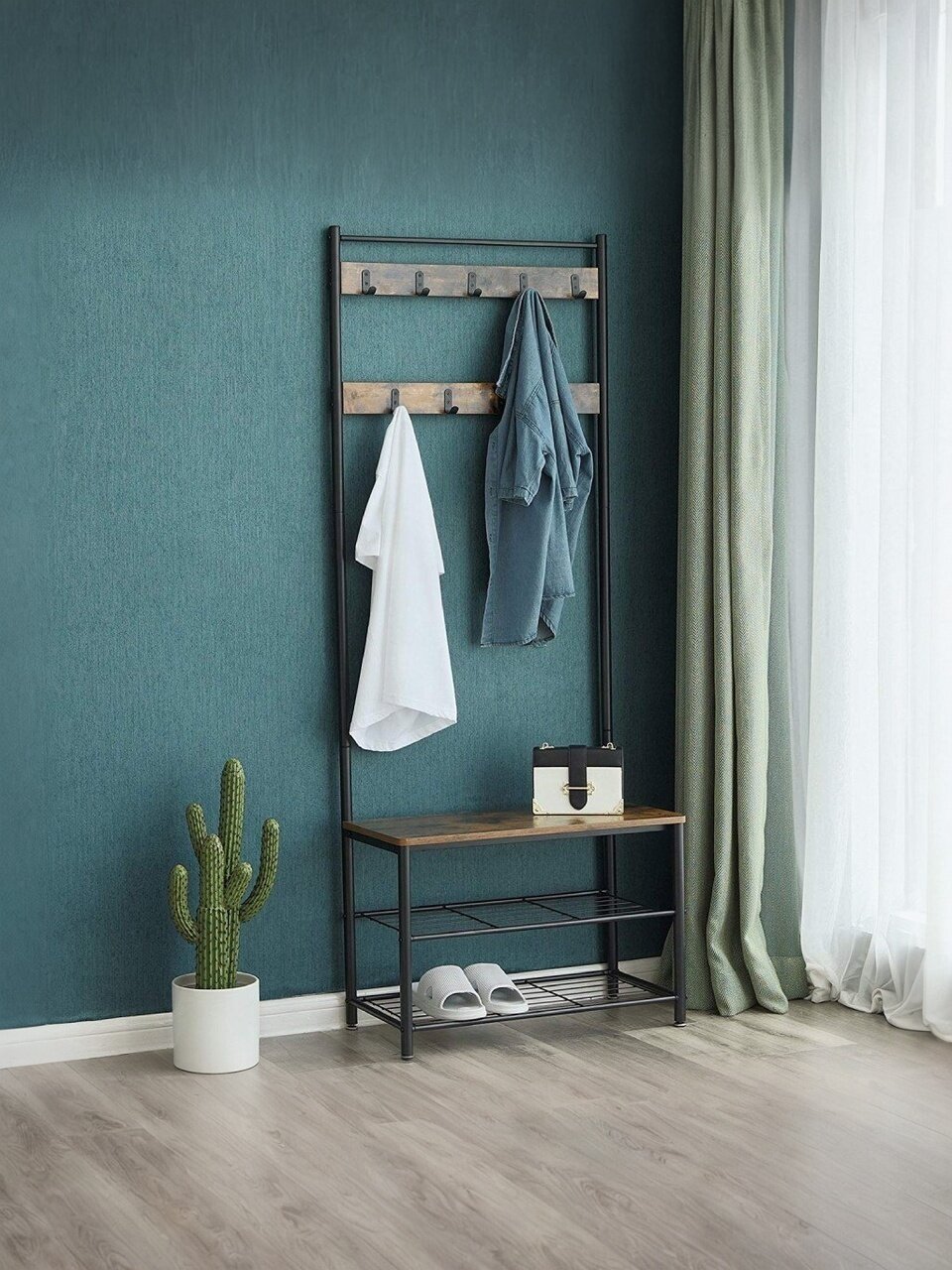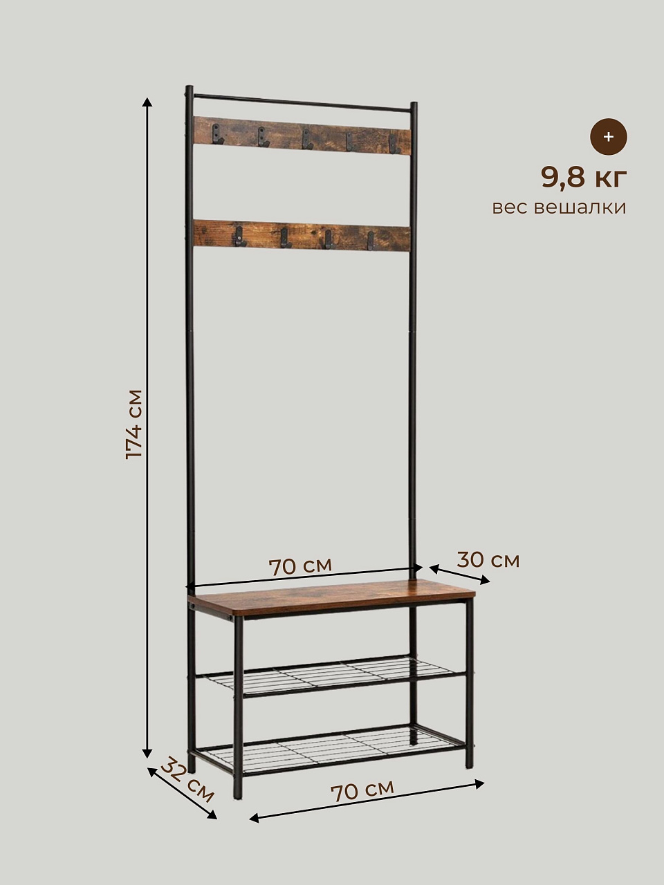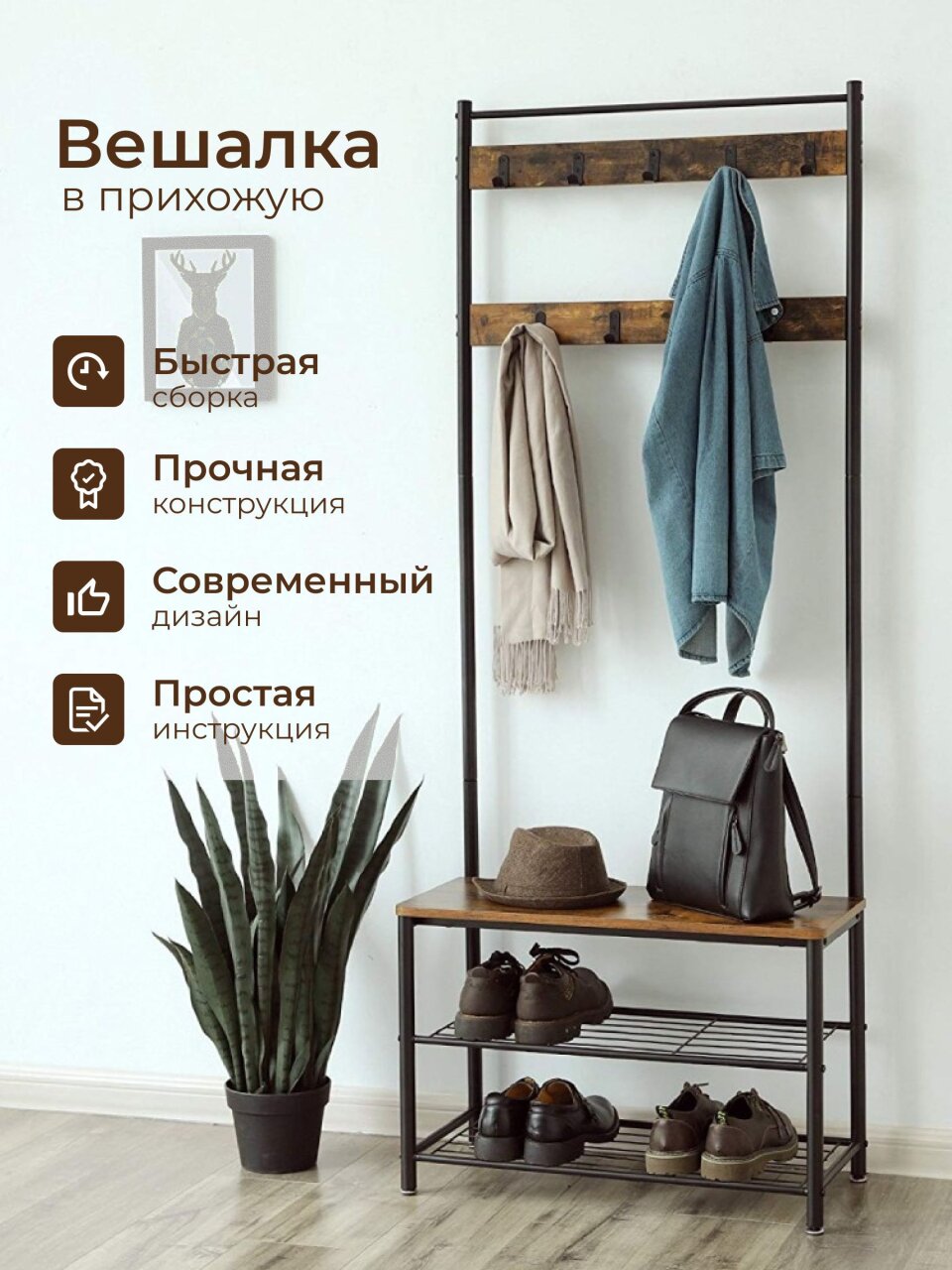 Вешалка в прихожую 70×32×175 см Лофт: компактное хранение до 80 кг, 10 крючков и полка для обуви — стиль и порядок в вашем доме