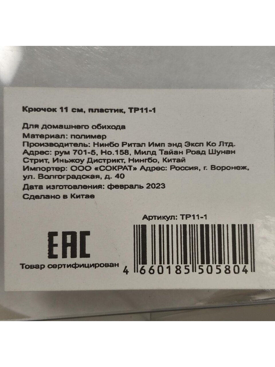 Вы можете приобрести «Крючок 11 см, пластик, TP11-1» и другие товары в нашем интернет-магазине в Белгороде по низким ценам и с бесплатным самовывозом.