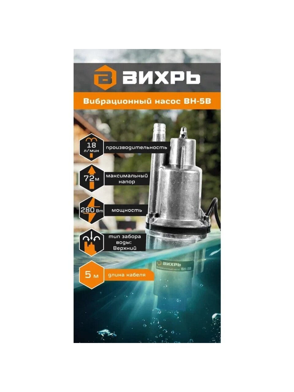 Вы можете приобрести «Насос вибрационный, Вихрь, верхний забор, 5 м, 280 Вт, глубина погружения 3 м, максимальный напор 72 м, 1.08 м³/ч, ВН-5В» и другие товары в нашем интернет-магазине в Ярославле по низким ценам и с бесплатным самовывозом.