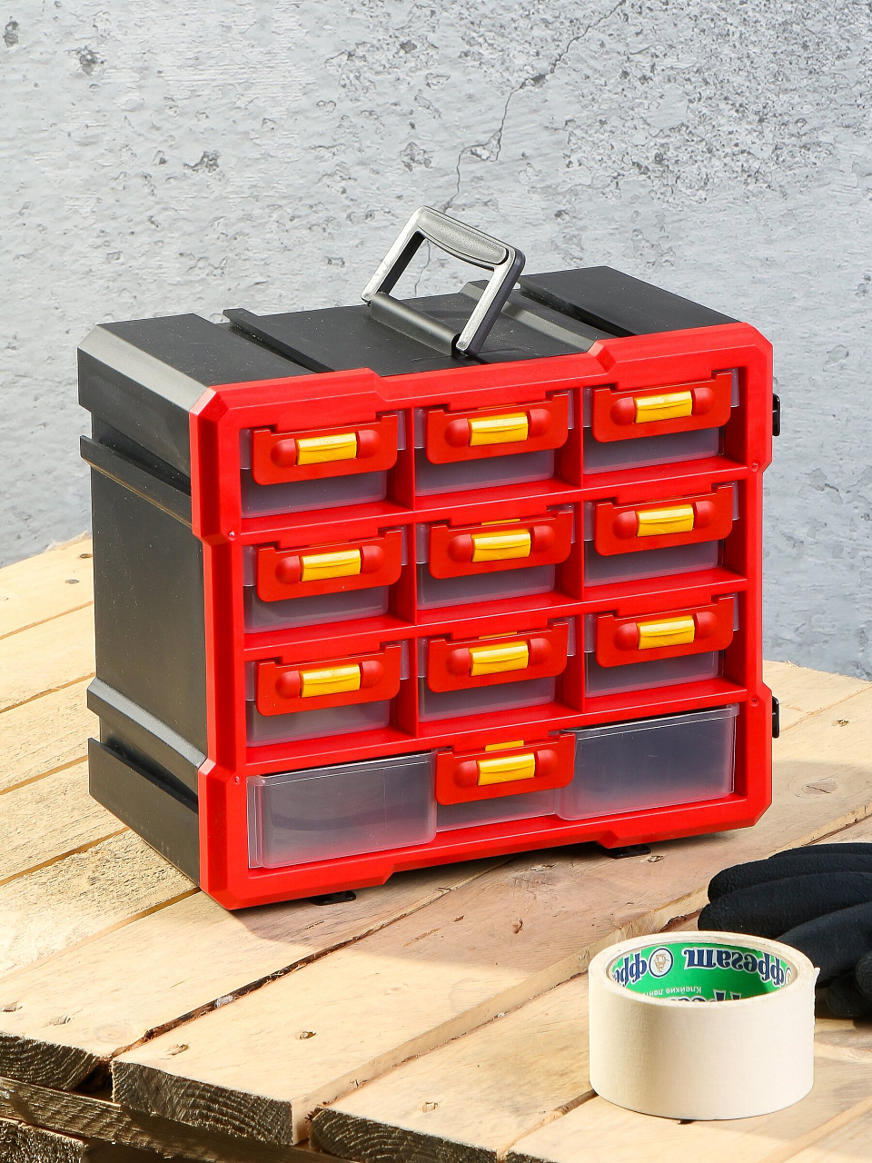 Используйте для хранения ручного инструмента, крепежа, расходников дома, на даче, в гараже. Подходит для мастеров, домашних пользователей, подарка.