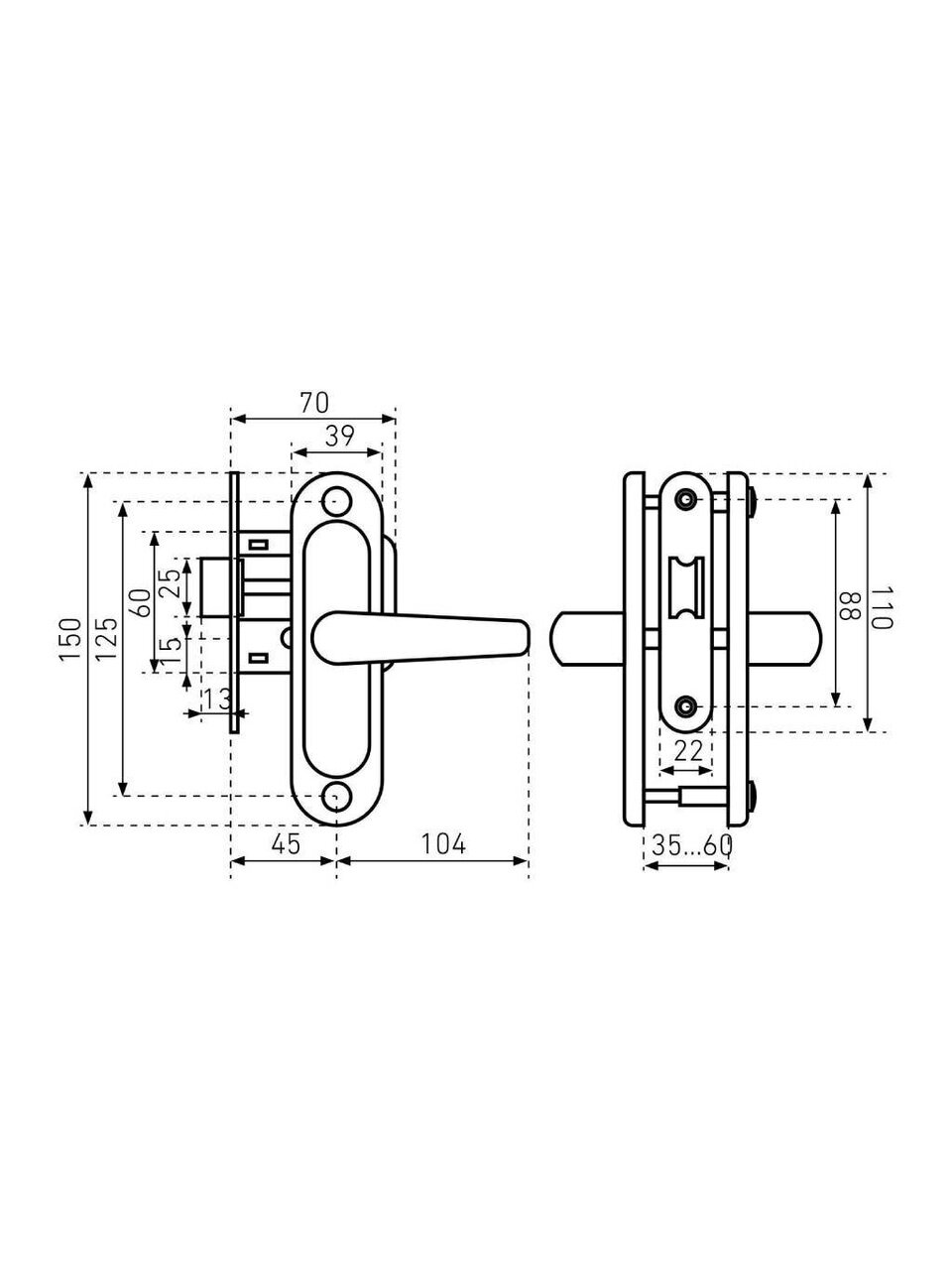 - Толщина дверного полотна: 35-55 мм;