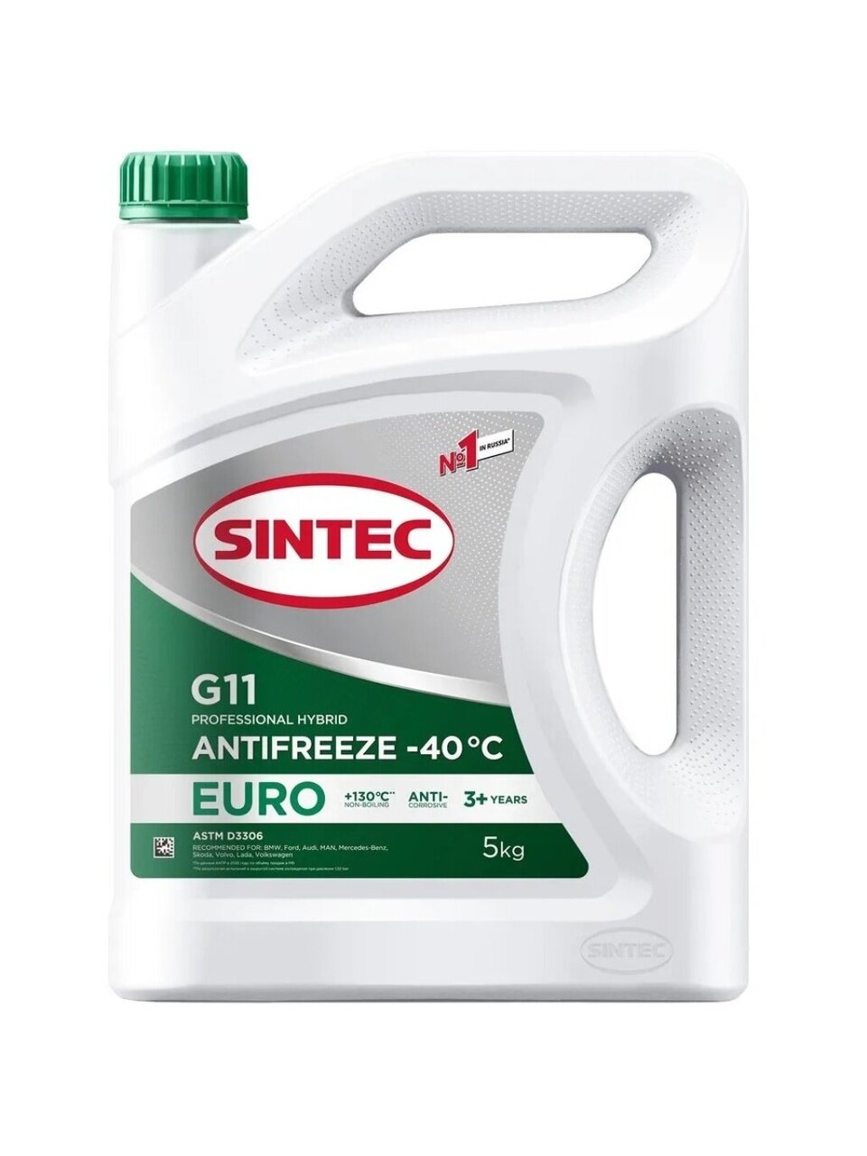 Антифриз Sintec Euro G11 - охлаждающая жидкость последнего поколения, созданная на основе высококачественного моноэтиленгликоля и импортных ингибиторов коррозии. Обеспечивает правильный тепловой режим эксплуатации двигателя, предотвращает появление коррозии и отложений в системе охлаждения. Применяется в системе охлаждения легковых автомобилей отечественного и зарубежного производства, грузовиков и других транспортных средств со средними и тяжелыми условиями эксплуатации, где к применению рекомендованы охлаждающие жидкости соответствующего эксплуатационного уровня.